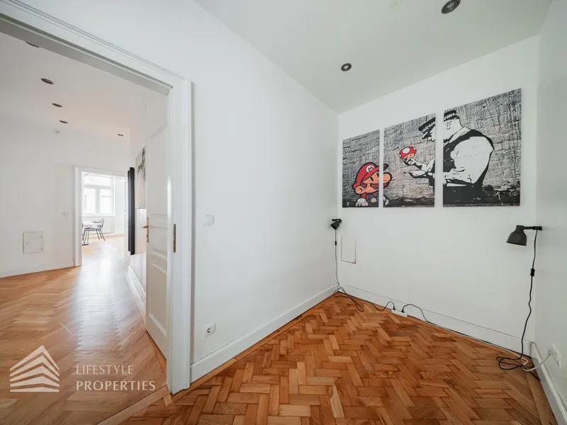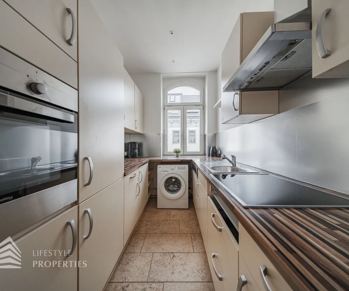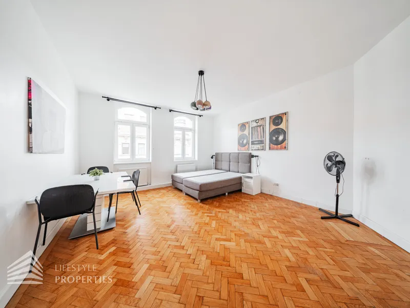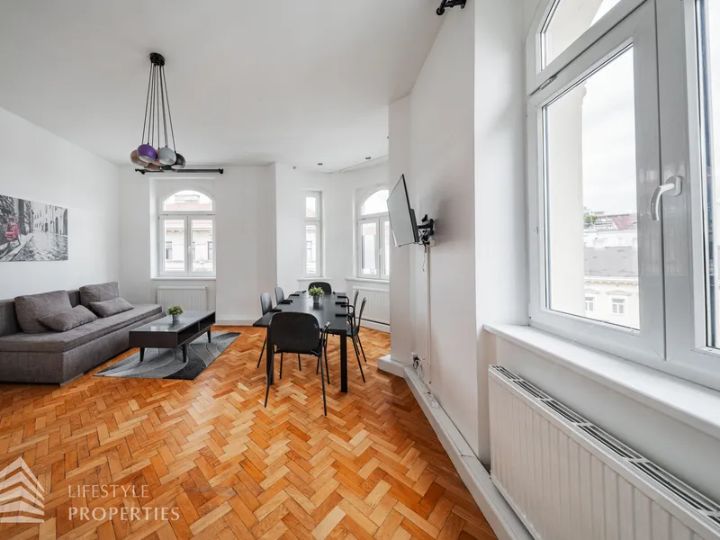 Die Wohnung befindet sich im 3. Liftstock eines um die Jahrhundertwende errichteten Stilaltbaus. Sie gliedert sich in einen Vorraum, zwei Zimmer, eine Küche, eine Garderobe, ein Bad und ein WC. Die Wohnräume sind mit einem schönen Parkettboden ausgestattet und die Nassräume sind verfliest. Beheizt wird mittels Gas-Etagenheizung. Die Wohnung wurde bis vor kurzem als Apartment vermietet und wird zum Teil möbliert verkauft.