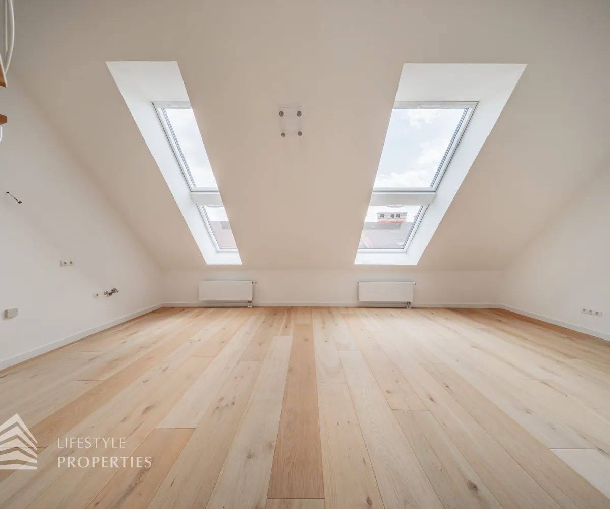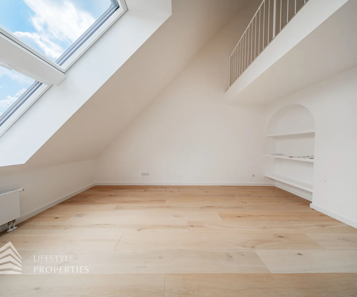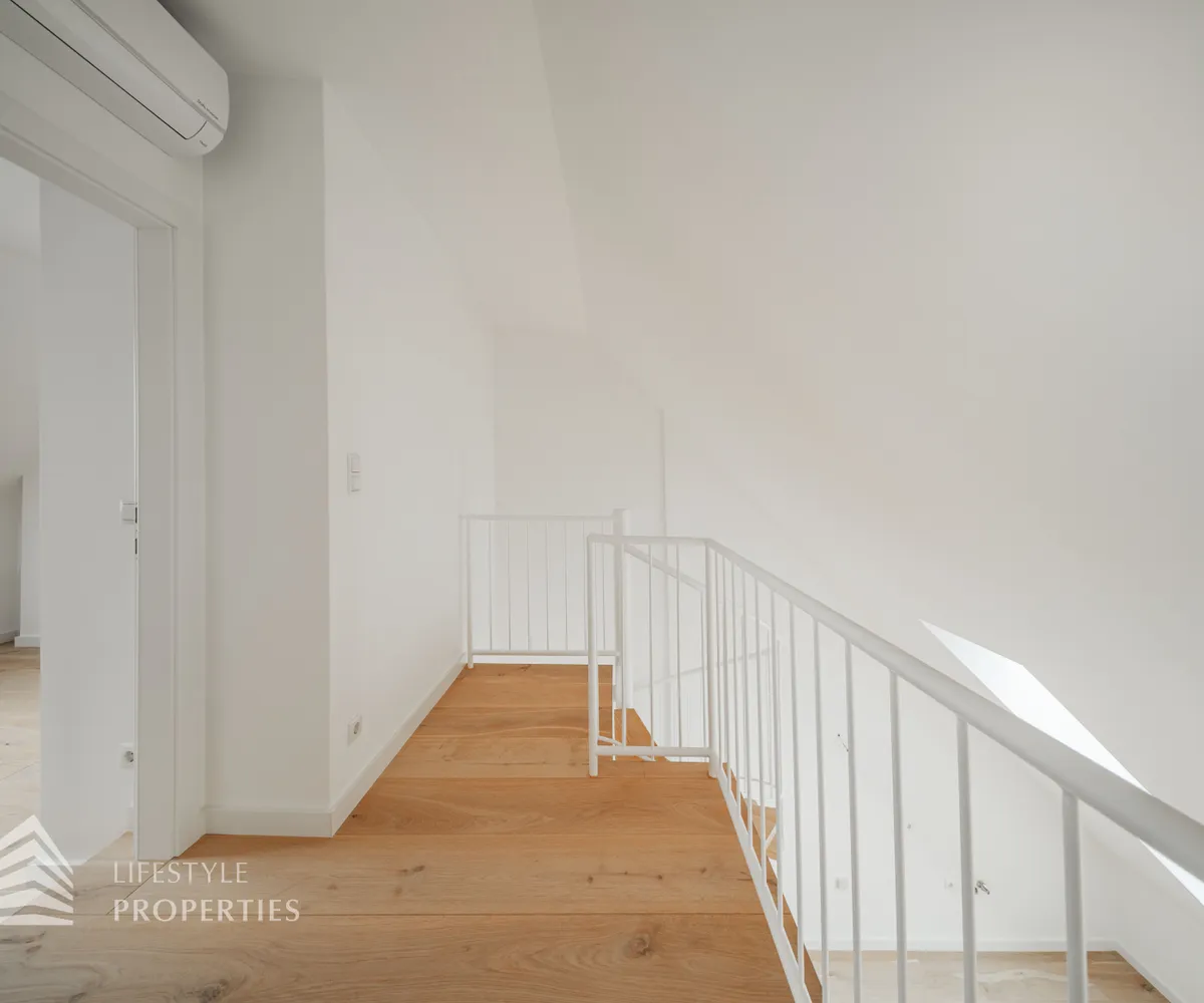 Die entzückende Wohnung mit ca. 78 m² befindet sich, bequem über einen Aufzug erreichbar, im 2. DG eines um die Jahrhundertwende errichteten Stilaltbaus in einer gefragten Wohngegend des 4. Wiener Gemeindebezirks. Die elegante Gründerzeitfassade sowie auch sämtliche Allgemeinflächen des Hauses wurden mit viel Liebe zum Detail renoviert. Das Eckzinshaus verfügt über 3 Regelgeschosse und einem ausgebauten Dachgeschoss. Die Wohnung wurde modernisiert und hochwertig ausgestattet und teilt sich auf 2 Etagen in einen Vorraum, eine Wohnküche, ein Schlafzimmer, ein Bad, eine Galerie und ein WC auf.