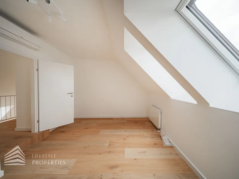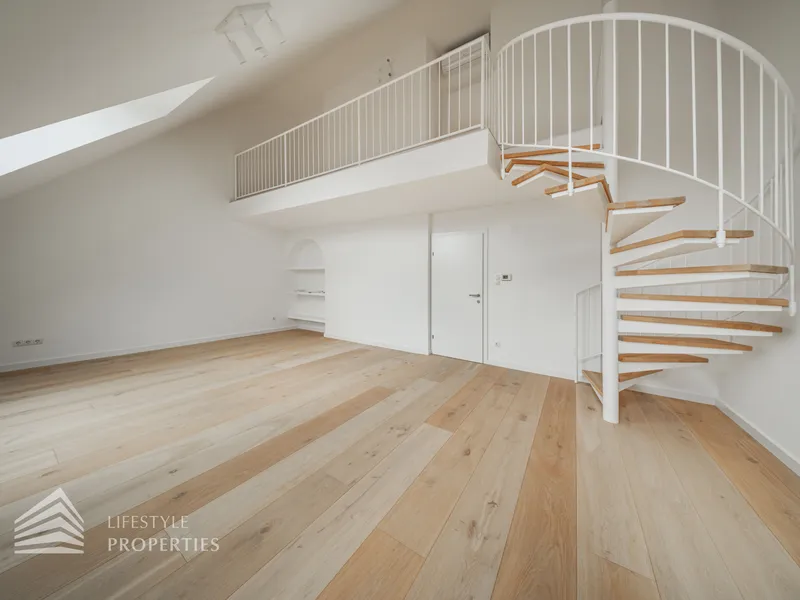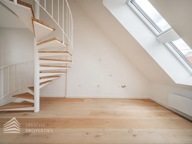 Sie betreten die Wohnung und befinden sich im Vorraum, gerade durch gelangen Sie in die helle Wohnküche. Über eine Wendeltreppe gelangen Sie zum Schlafzimmer und den Galeriebereich, der der Wohnung einen besonderen Charme verleiht. Das Badezimmer ist mit einer Badewanne und einem Waschbecken ausgestattet. Das separate WC befindet sich auch im Vorraum.