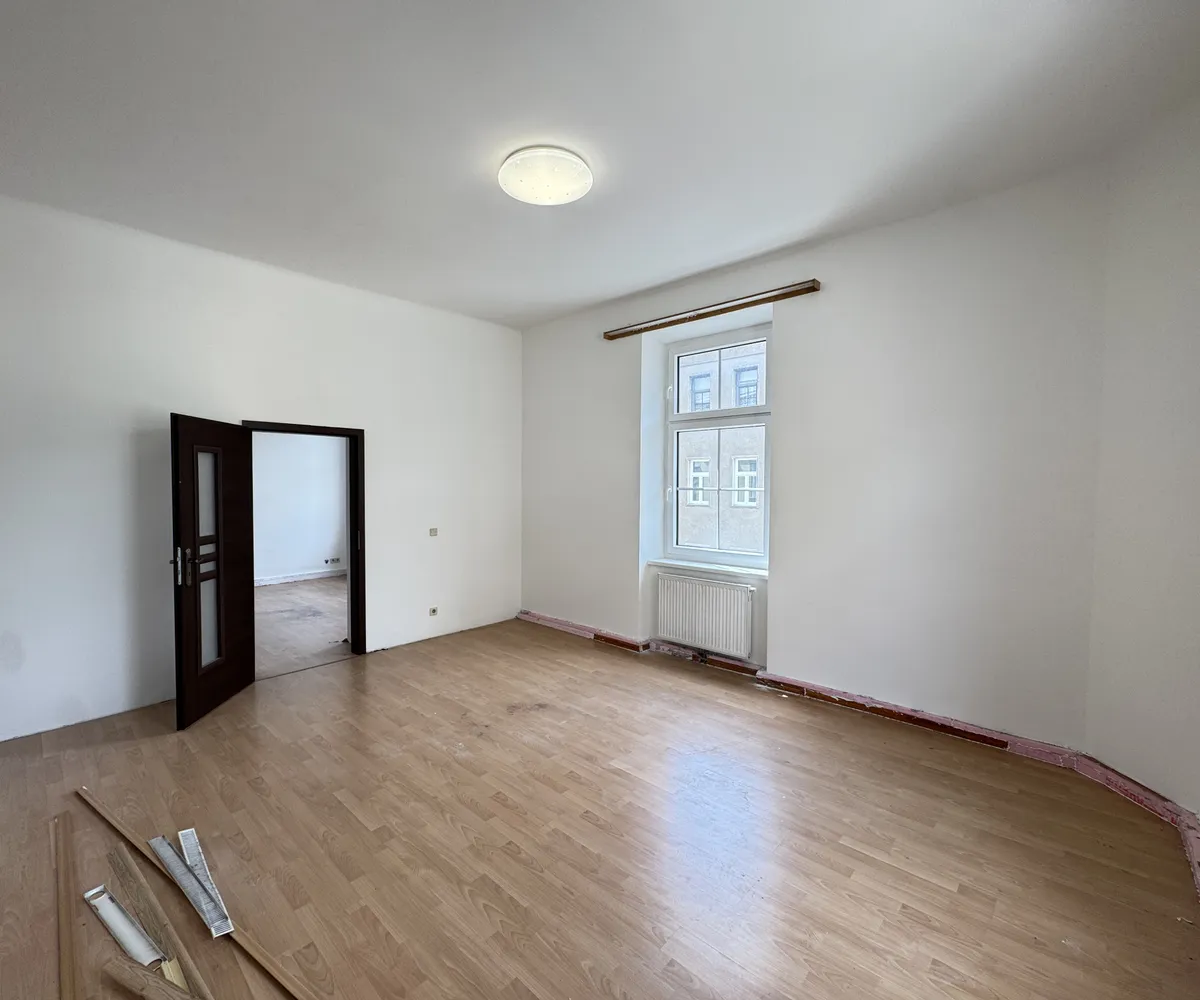 Die Wohnung verfügt über zwei lichtdurchflutete Zimmer, die Ihnen vielseitige Gestaltungsmöglichkeiten bieten. Ob als gemütliches Schlafzimmer, inspirierendes Arbeitszimmer oder einladender Wohnbereich – hier können Sie Ihrer Kreativität freien Lauf lassen. Die sanierungsbedürftige Ausstattung erlaubt es Ihnen, die Wohnung nach Ihren eigenen Vorstellungen und Wünschen zu gestalten.