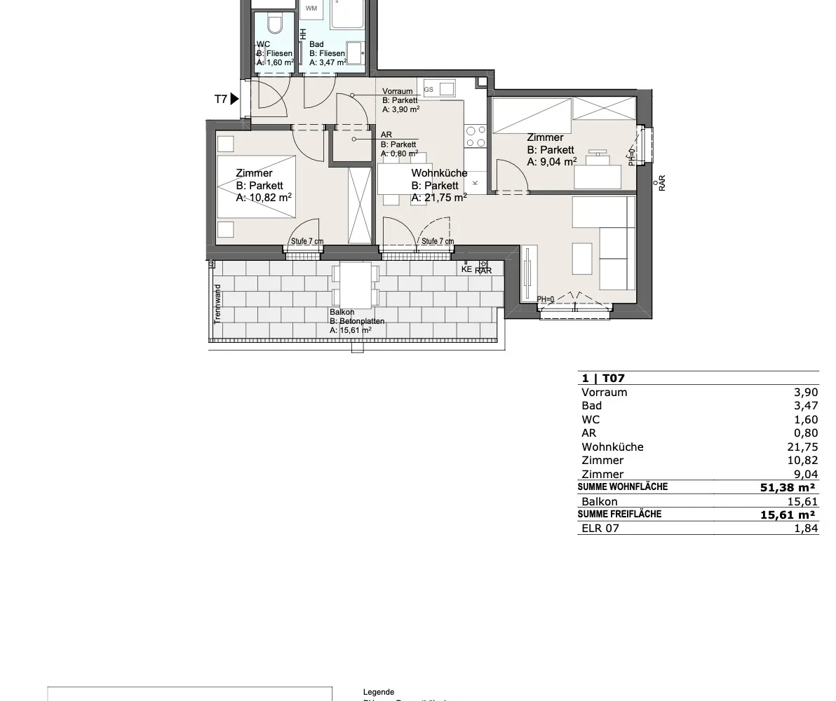 – Balkon: ca. 15,61 m²