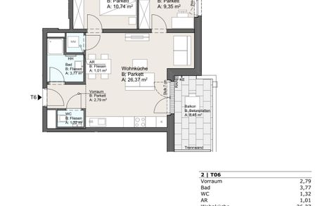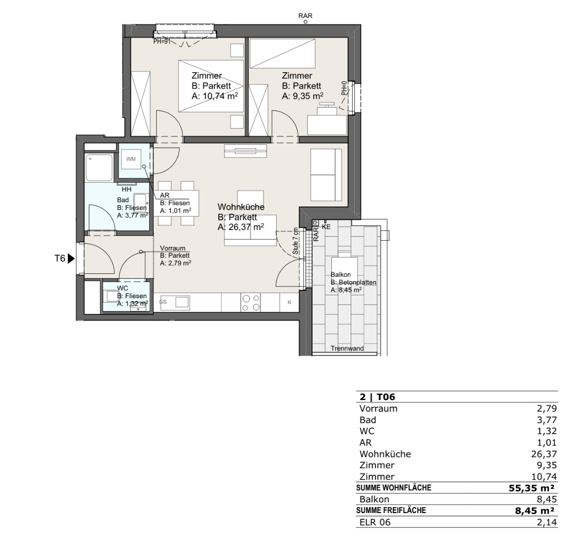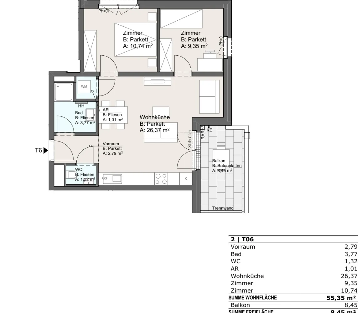 Top 06 | 3 Zimmer | ca. 55 m² + ca. 8 m² Balkon