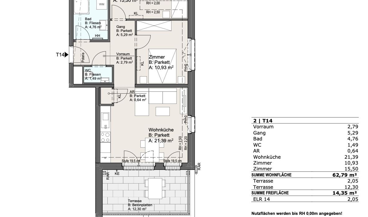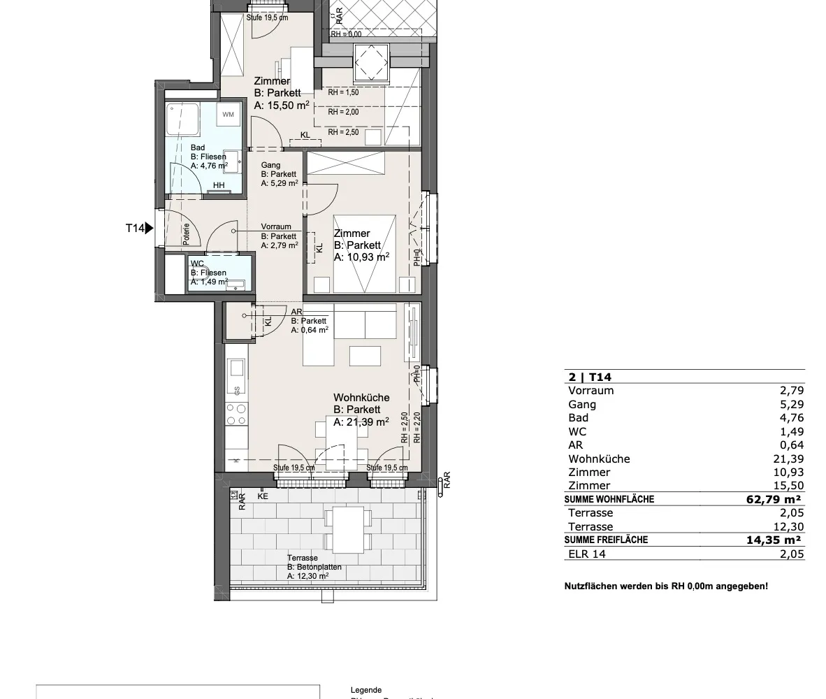Top 14 | 3 Zimmer | ca. 63 m² + ca. 14 m² Terrassen