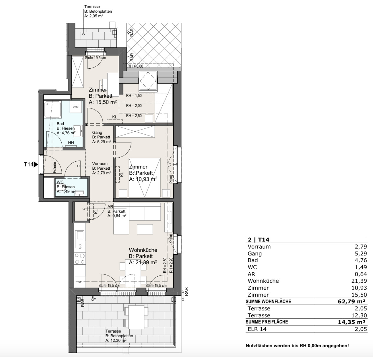 Top 14 | 3 Zimmer | ca. 63 m² + ca. 14 m² Terrassen