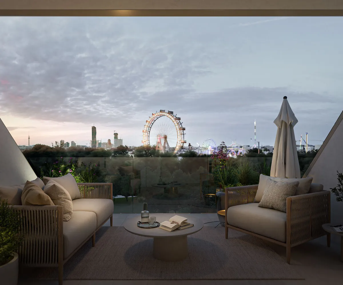 Mit ausgezeichneter Infrastruktur, hervorragender Anbindung an das öffentliche Verkehrsnetz und der grünen Oase des Praters wird höchster Wohnkomfort gewährleistet.