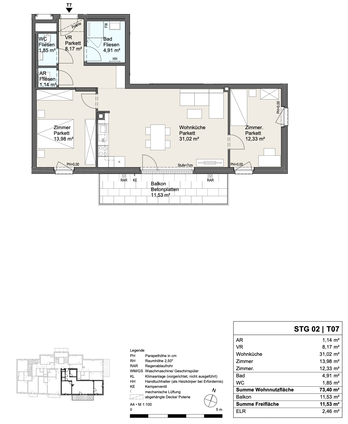 | Top 7 | 73,40 m2 | 11,53 m2 | 499.000 € | 3 |
