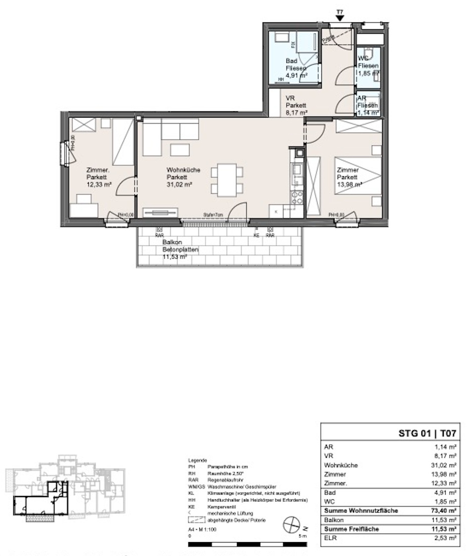 Alle Preise verstehen sich ohne Kücheneinrichtung und Tiefgaragenstellplatz ( á € 32.256.- bzw. 29.059,46.- Netto + USt) , in schlüsselfertiger Ausführung!