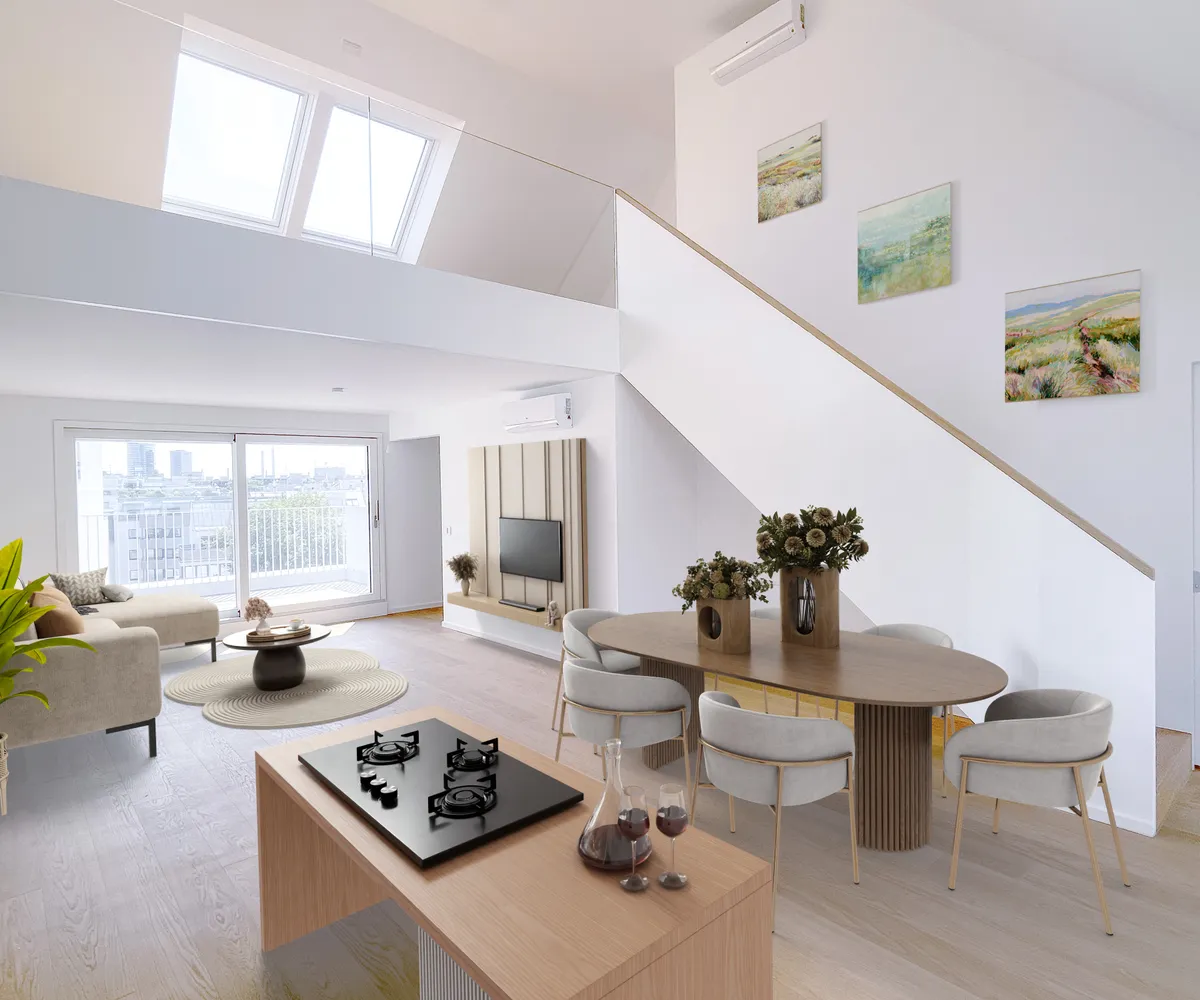 Alle vier Bautrakte bieten eine Vielzahl an Wohnungen unterschiedlicher Größe und Ausstattung, von gemütlichen Ein-Zimmer-Apartments bis hin zu geräumigen Penthouse-Wohnungen mit Terrassen und Blick auf die Stadt.