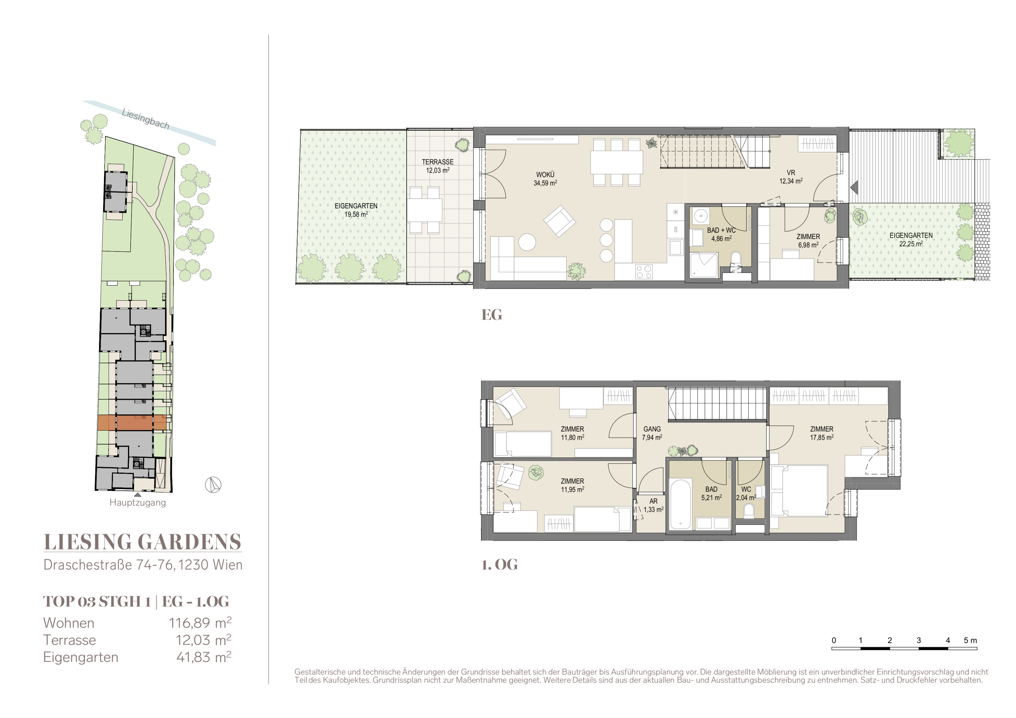 Die Lage von Liesing Gardens verspricht eine perfekte Verbindung von urbanem Komfort und naturnaher Idylle. Eingebettet zwischen Atrien- und Reihenhäusern sowie den Grünanlagen entlang des Liesingbachs bietet dieses Projekt eine Oase der Ruhe und Erholung direkt vor der Haustür.