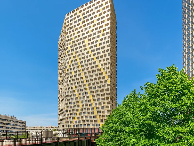 Der Q-Tower, der goldene Turm, steht für eine neue Dimension für Wohnen, Wellness, Freizeit, Gastronomie und Shopping. Mit 114 Metern Höhe und 34 Geschoßen setzt das elegante Wohnhochhaus architektonische Spitzenmaßstäbe. Die goldschimmernde, facettenreiche Fassade macht den Q-Tower schon auf den ersten Blick zu einem neuen Wahrzeichen in der Skyline Wiens.