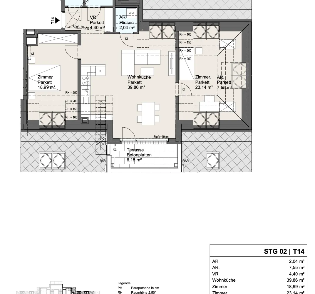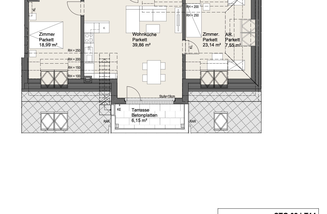 Stg. 2 Top 14 | 3 Zimmer | ca. 103 m² + ca. 41 m² Freifläche