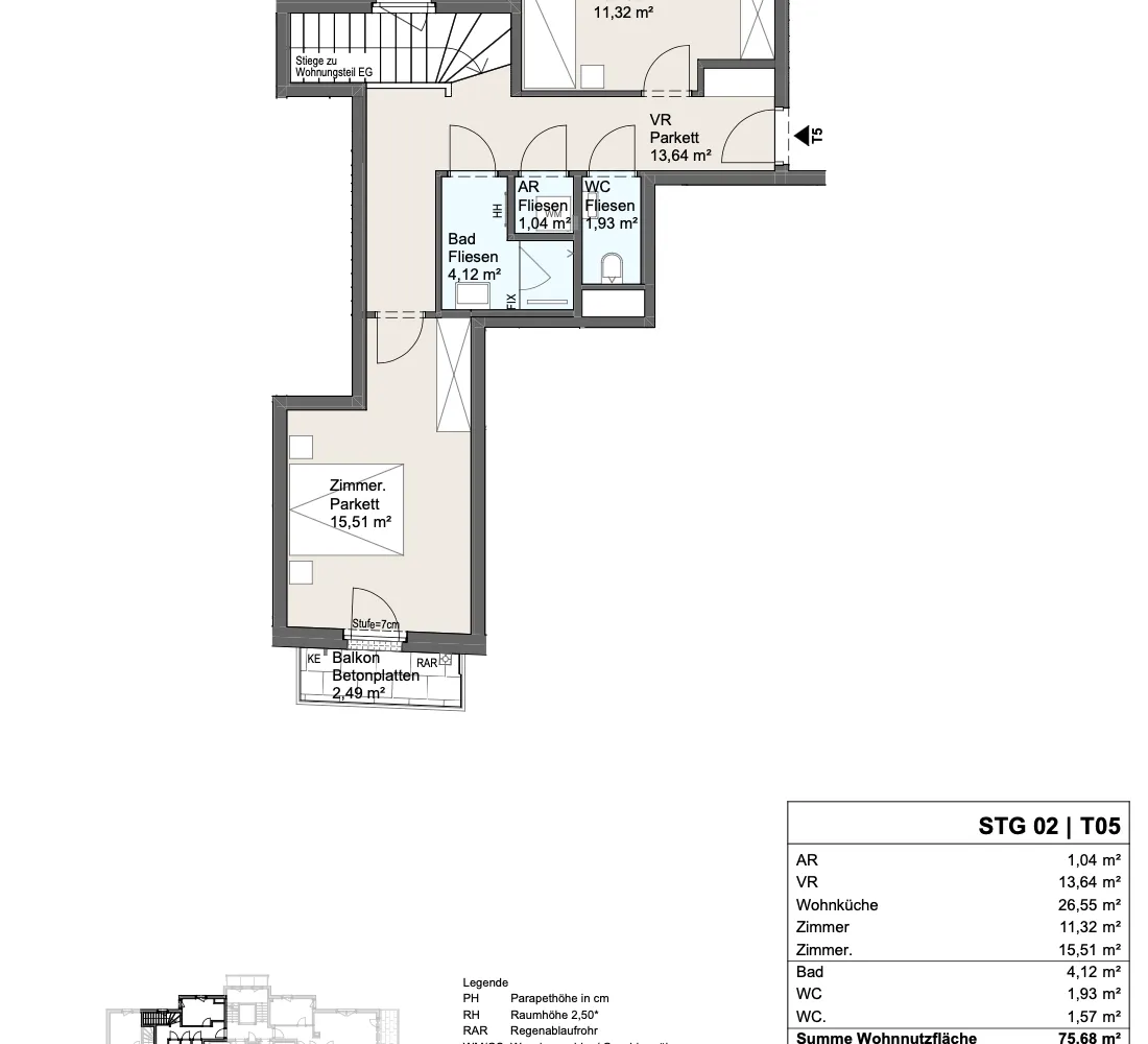Stg. 2 Top 05 | 3 Zimmer | ca. 76m² + ca. 161m² Freifläche