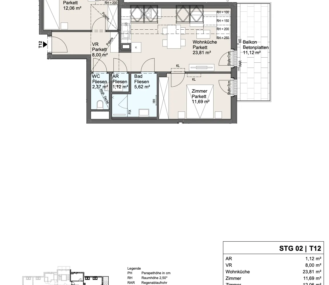 Stg. 2 Top 12 | 3 Zimmer | ca. 64 m² + ca. 11 m² Balkon