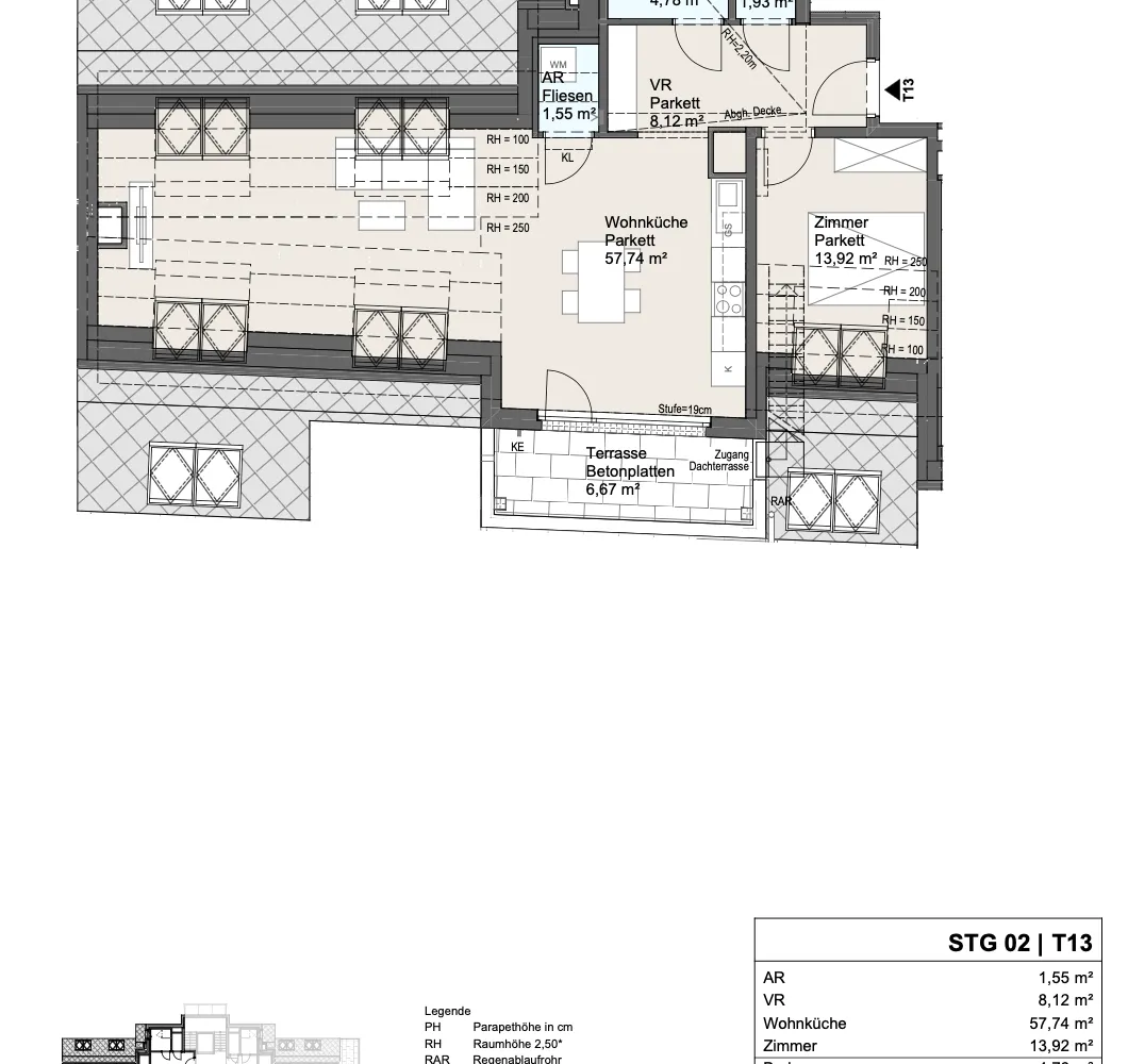 Stg. 2 Top 13 | 2 Zimmer | ca. 88 m² + ca. 23 m² Freifläche