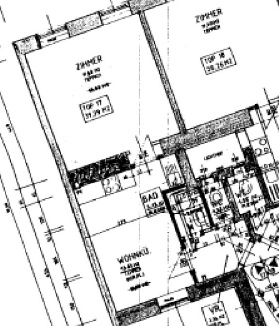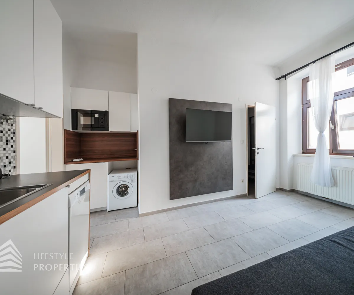 Die Wohnung hat eine Größe von ca. 40 m² und befindet sich im 4. Stock eines Altbaus. Das Haus verfügt über sechs Etagen und wurde im Jahr 1993 sockelsaniert. Sie gliedert sich in einen Vorraum, einen Wohnküche, ein Zimmer, ein Bad mit Dusche und ein WC.