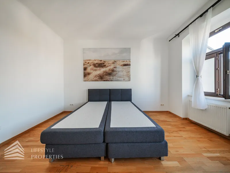 Die Wohnung wird möbliert verkauft. Die Wohnräume sind mit Parkettboden ausgestattet, die Nassräume sind verfliest.