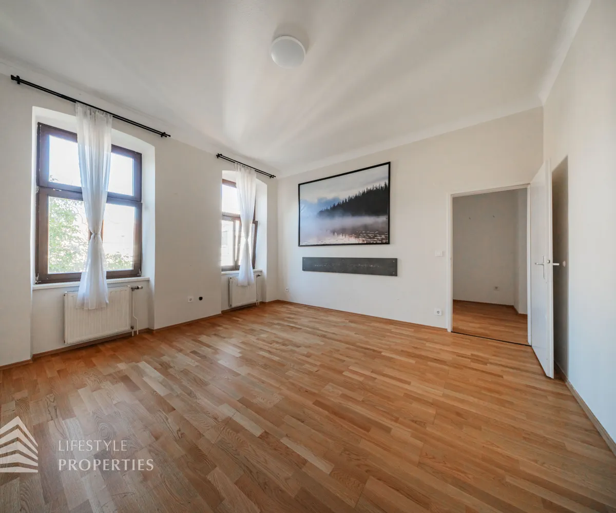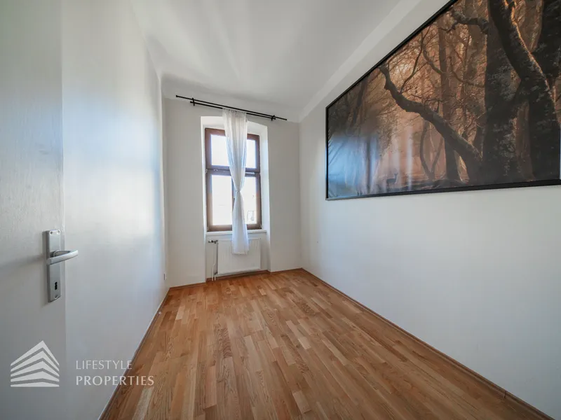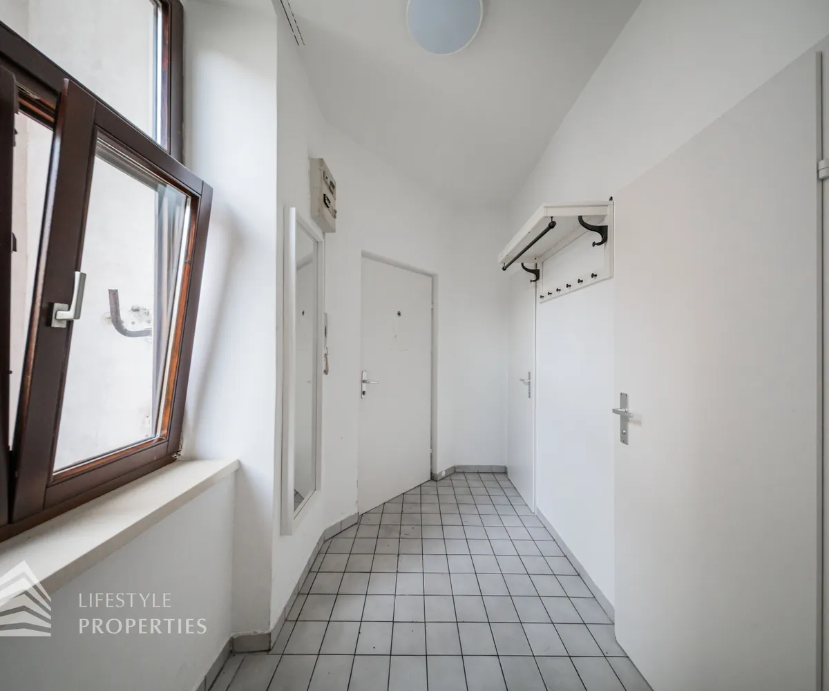 Die Wohnung hat eine Größe von ca. 56,64 m² und befindet sich im 3. Stock eines Altbaus. Das Haus verfügt über sechs Etagen und wurde im Jahr 1993 sockelsaniert. Sie gliedert sich in einen Vorraum, einen Wohnraum, zwei Zimmer, eine Küche, ein Bad und ein WC.