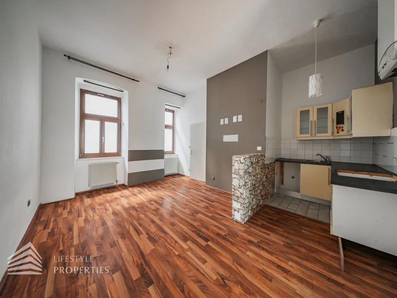 Die Wohnung hat eine Größe von ca. 37,61 m² und befindet sich im 2. Stock eines Altbaus. Das Haus verfügt über sechs Etagen und wurde im Jahr 1993 sockelsaniert. Sie gliedert sich in einen Vorraum, eine Wohnküche, ein Schlafzimmer, ein Bad und ein separates WC.