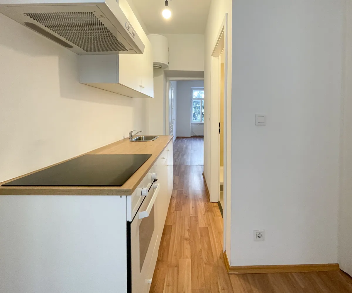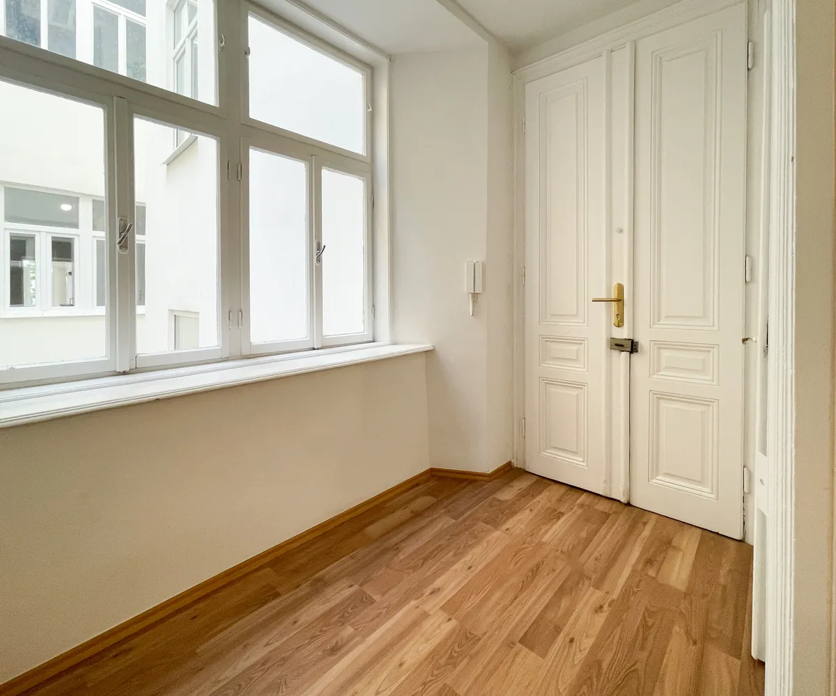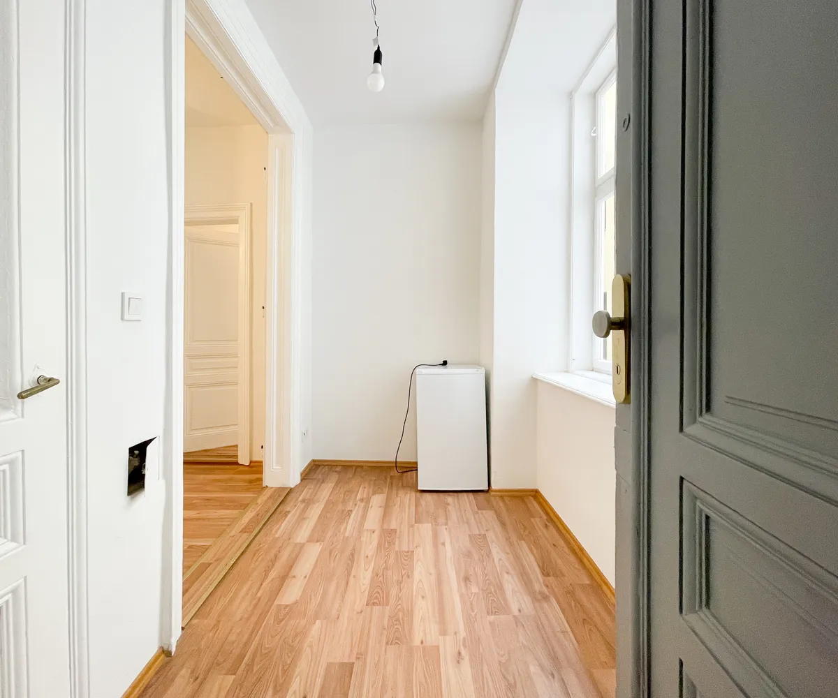Diese charmante 2-Zimmerwohnung liegt in einem frisch sanierten Gründerzeithaus mit schönen Fassadendetails.