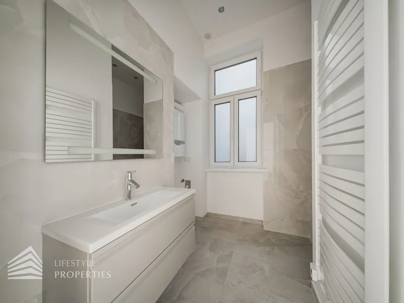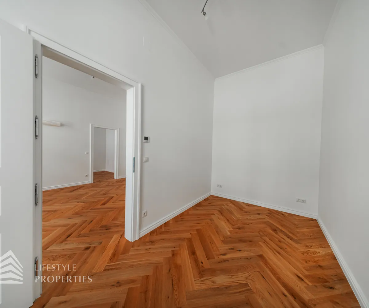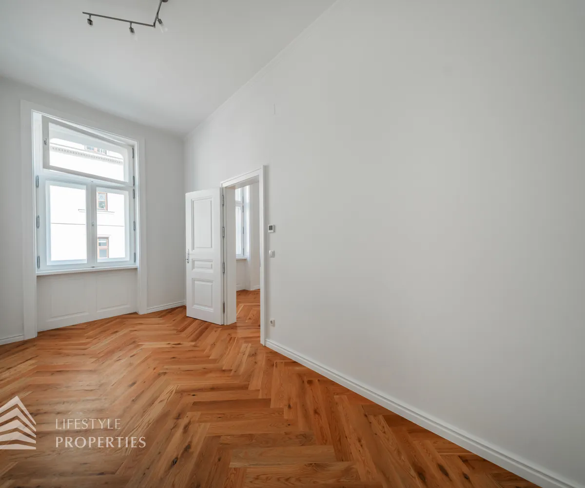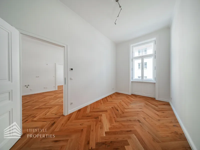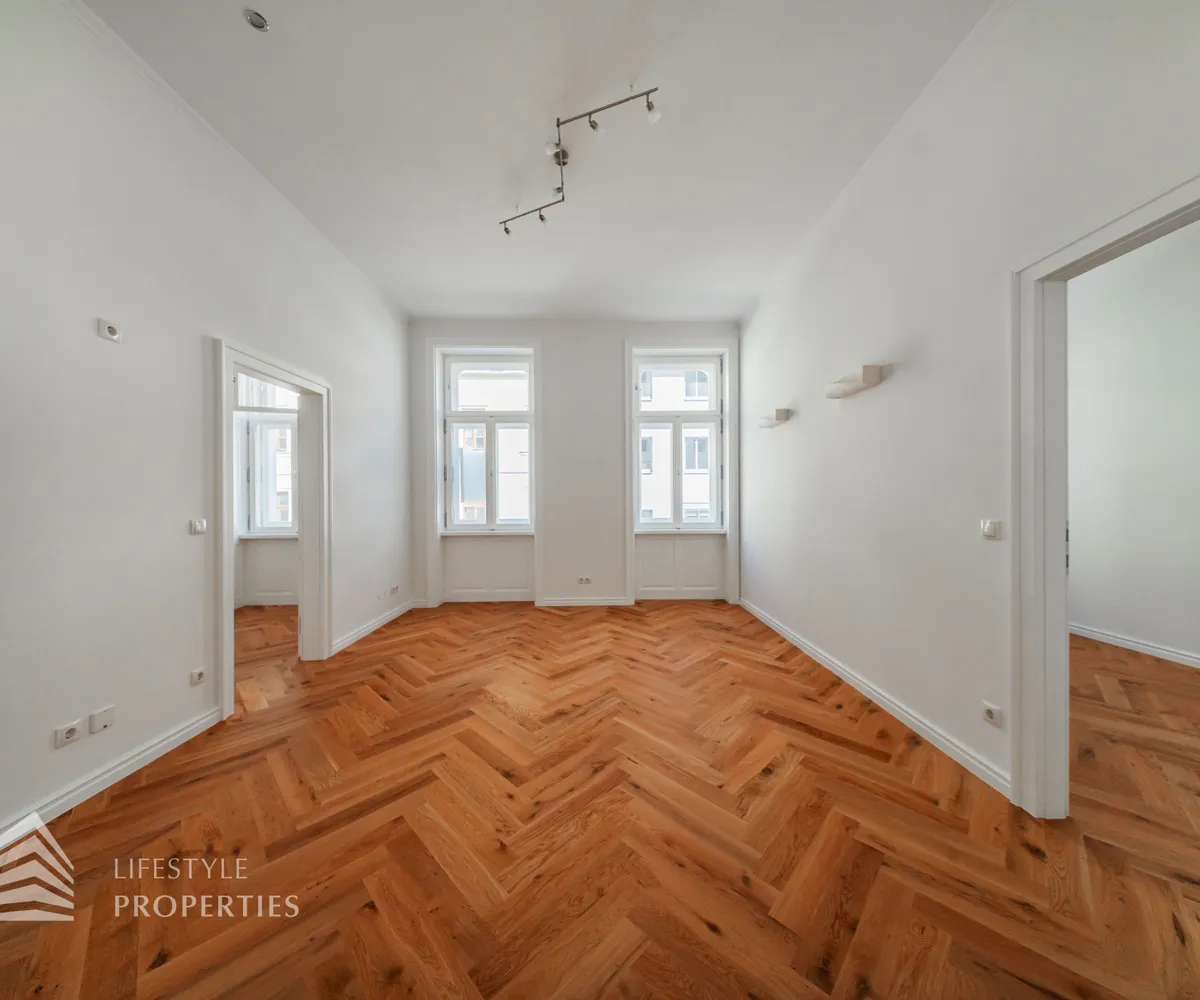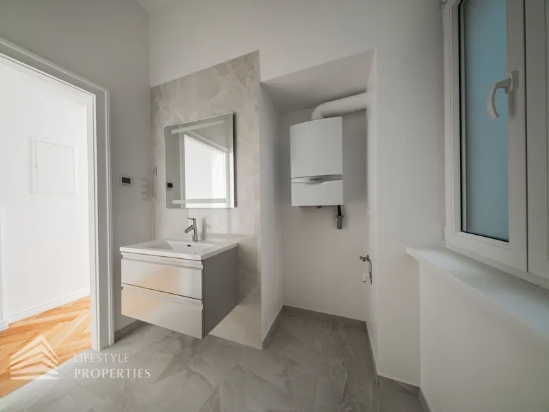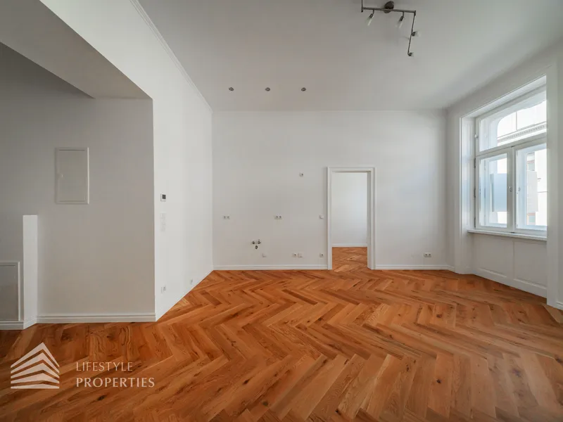Die Wohnung befindet sich im 1. Stock eines schönen Stilaltbaus aus dem Jahr 1897, ist ein Erstbezug und gliedert sich in einen Vorraum, eine Wohnküche, zwei Zimmer, ein Badezimmer und ein separates WC.