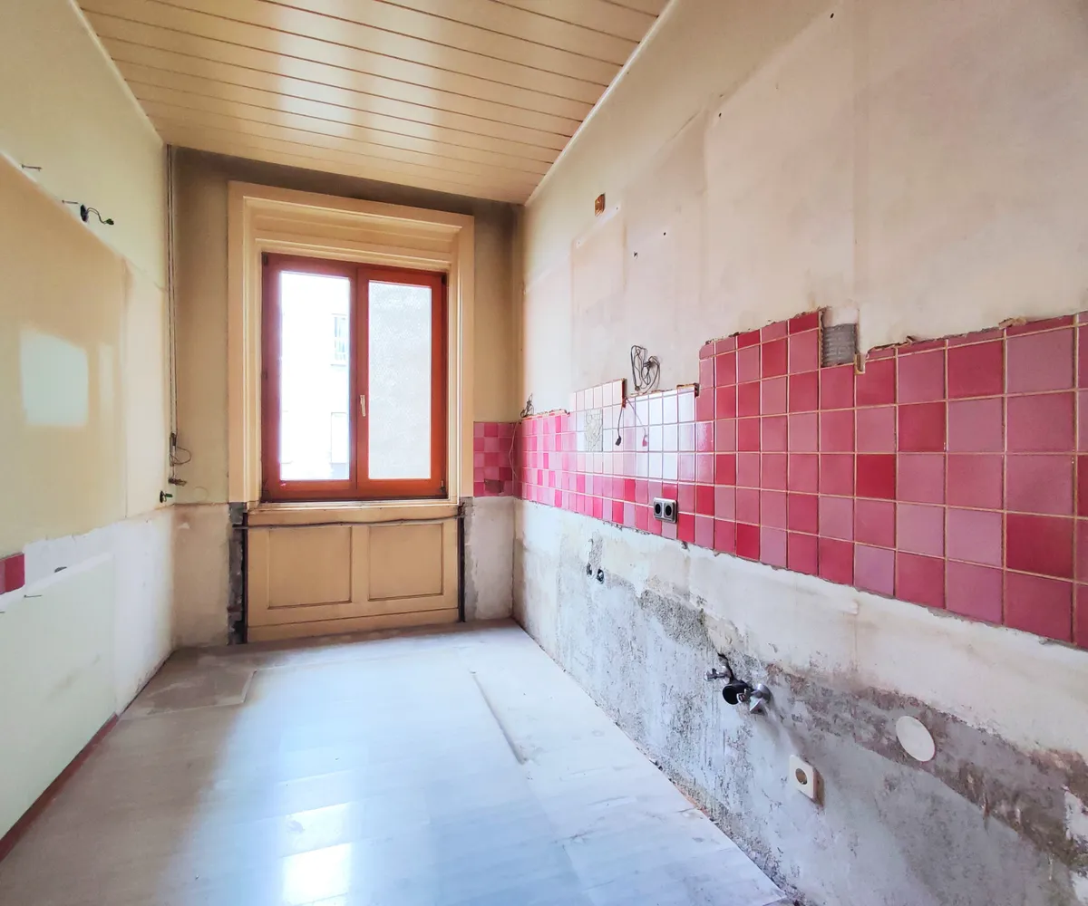 Geheizt wird mittels Gastherme. Die Wohnung erfordert eine Generalsanierung.