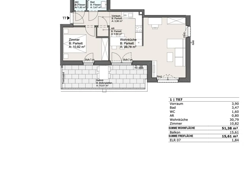 Top 07a | 2 Zimmer | ca. 51 m² + ca. 16 m² Balkon