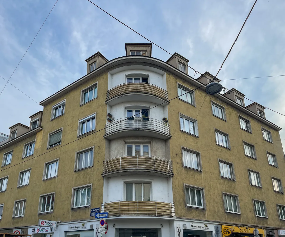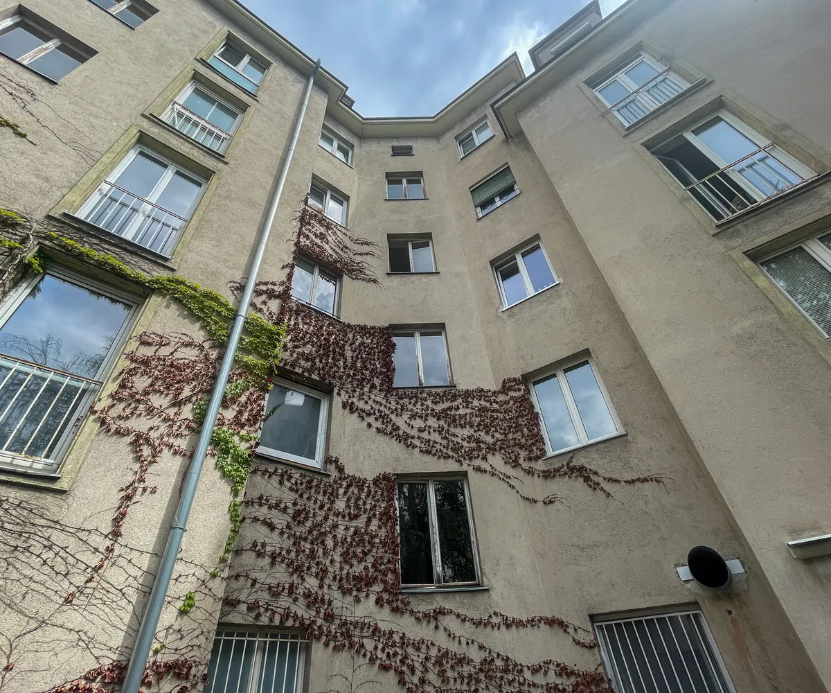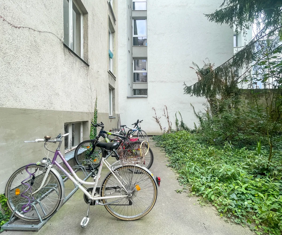 Diese gemütliche 2-Zimmerwohnung in einem gepflegten Haus aus den 1950er Jahren überzeugt durch ihre praktische Raumaufteilung und die hervorragende Lage. Über den netten grünen Innenhof, der die drei Stiegen des Hauses verbindet, gelangt man in das Gebäude. Im Innenhof gibt es die Möglichkeit Fahrräder abzustellen.