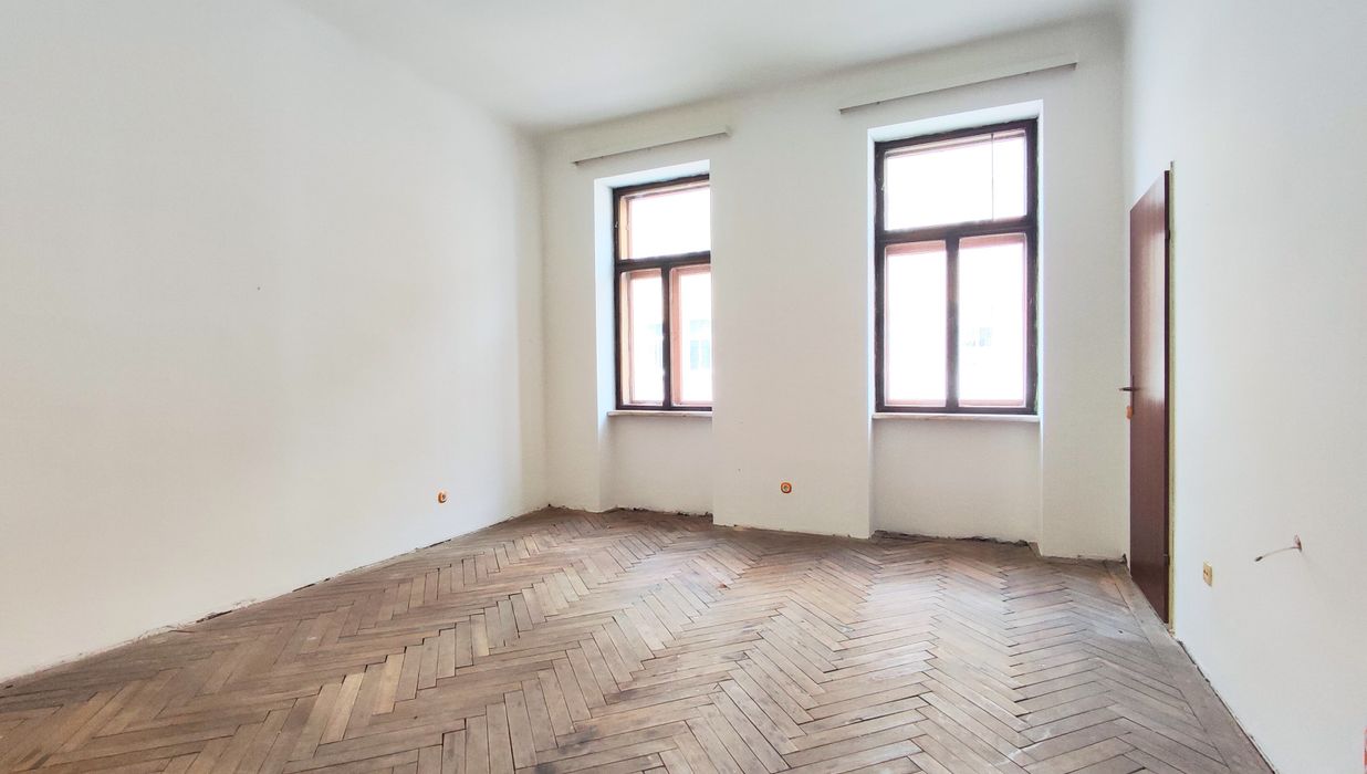 In einer ruhigen Straße, Nähe Hütteldorfer Straße, befindet sich diese renovierungsbedürftige 3-Zimmer-Wohnung im 2. Liftstock eines gepflegten Altbaus aus dem Jahr 1900.