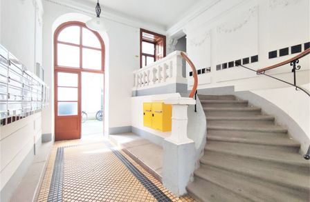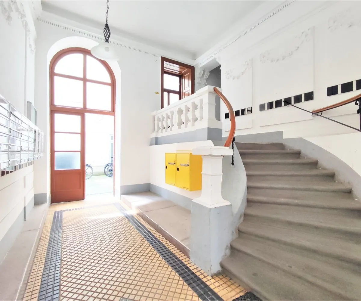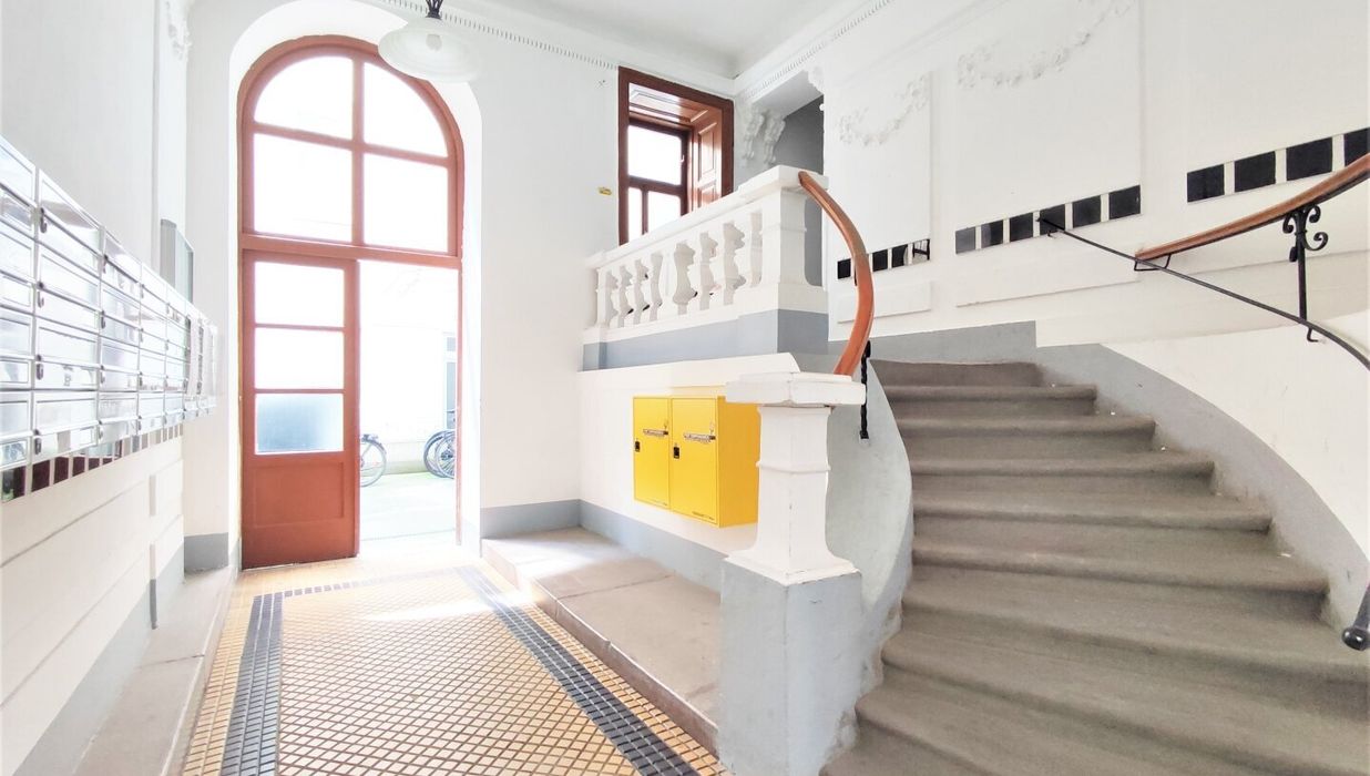 Bereits beim Eintreten des Hauses begrüßen historische Stuckelemente und ein äußerst gepflegter Eingang den Besucher.