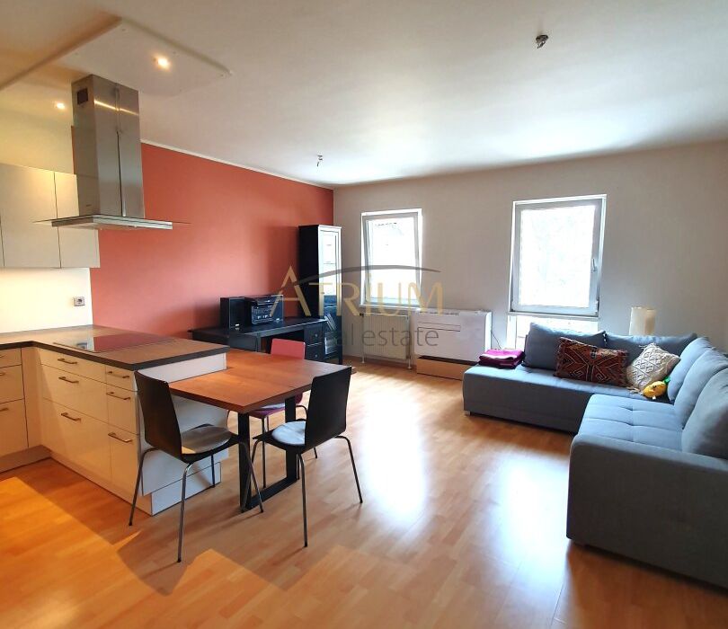 Auf der vierten Etage eines modernen Mehrfamilienhauses erstreckt sich diese stilvolle 64 m² große Wohnung über zwei Zimmer, die Ihnen ausreichend Platz für individuelle Gestaltungsmöglichkeiten bieten. Der durchdachte Grundriss ermöglicht eine optimale Raumnutzung und sorgt für eine angenehme Wohnatmosphäre.