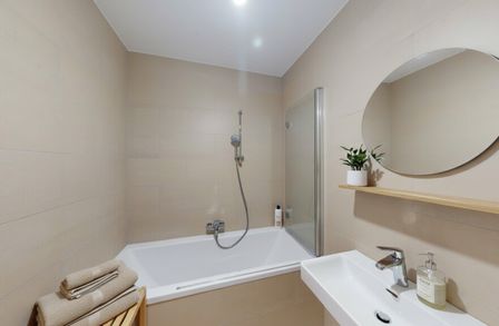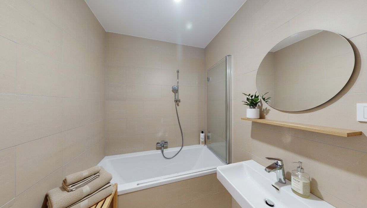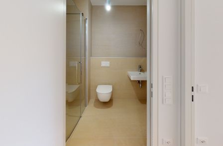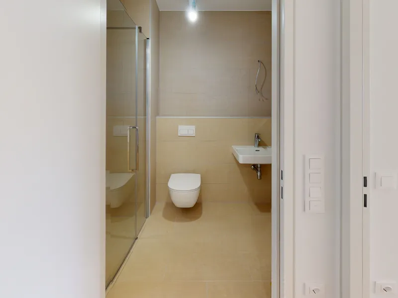 Zwei geräumige Schlafzimmer, zwei Bäder, ein separates WC sowie viel Stauraum machen diese Wohnung zur idealen Wahl für Paare, kleine Familien oder Menschen mit Platzanspruch.