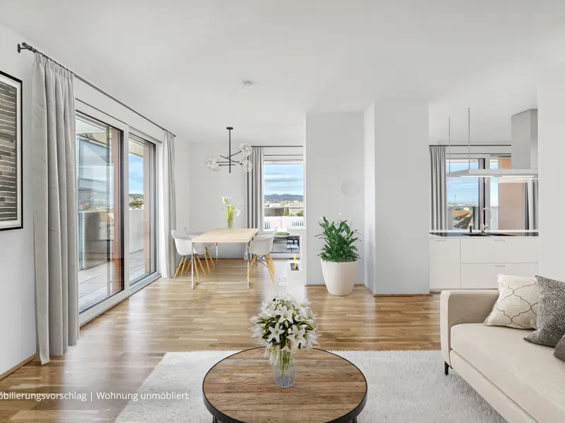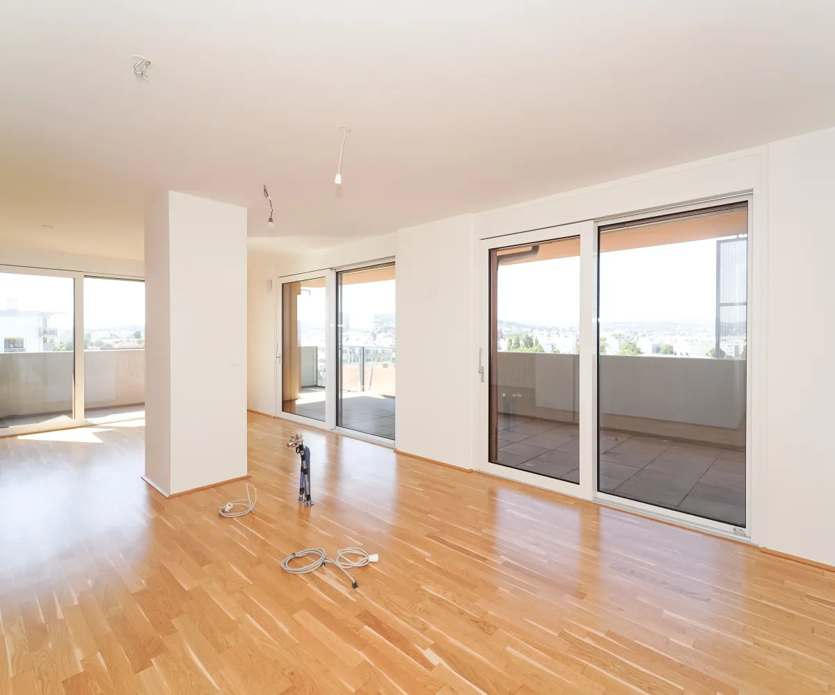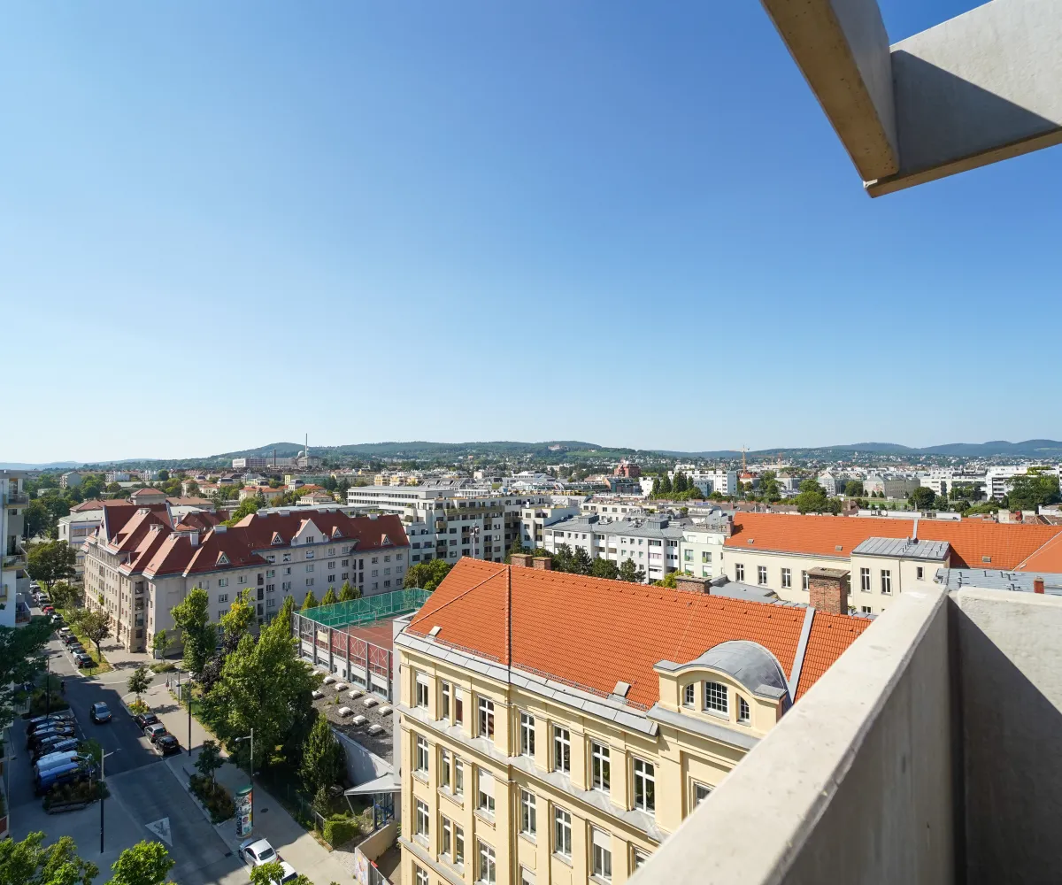 In der 9. Etage von Stiege 1 befindet sich die exklusive 4-Zimmer-Eigentumswohnung mit ca. 148 m² Wohnnutzfläche (inkl. Loggia) und einer umlaufenden Balkonfläche von rund 39 m². Ein echtes Highlight ist der spektakuläre Weitblick – von der Otto-Wagner-Kirche am Steinhof bis in die Innere Stadt Wiens. Diese Wohnung kombiniert Großzügigkeit, Ruhe und Panorama in einer Form, die in Wien ihresgleichen sucht.