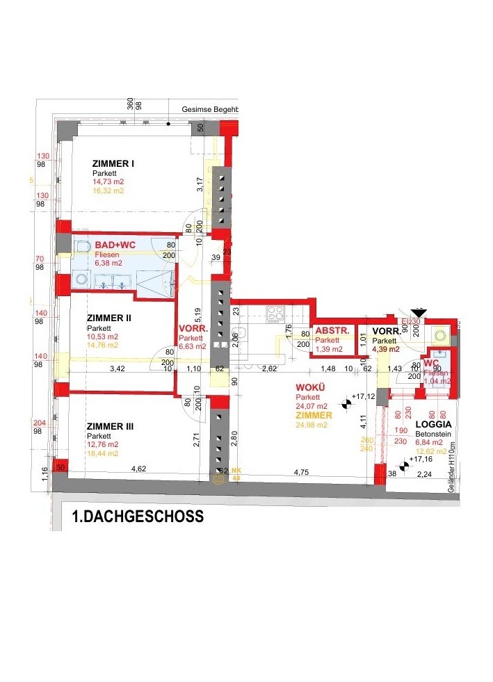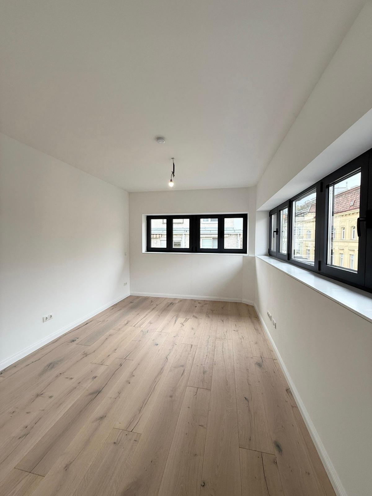 Die angebotene 4 Zimmer-Dachgeschoßwohnung wurde gerade fertiggestellt und hochwertig ausgestattet. Auf rund 82m² Wohnfläche teilt sich dieses Schmuckstück in Wohnzimmer, 3 Schlafzimmer, Badezimmer, WC und Vorraum. Die nordostseitigen 6,90m² große Loggia hat einen sehr schönen Ausblick und bietet einen idealen Platz um den Tag bei einem Frühstück zu beginnen.