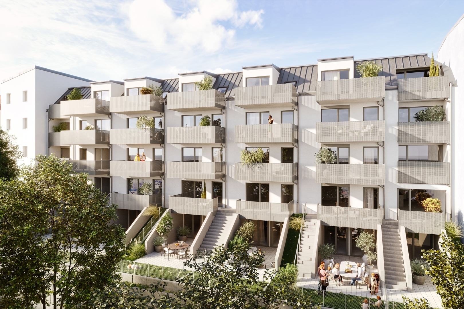 Insgesamt entstehen 25 moderne Mietwohnungen mit Wohnflächen zwischen 44 m² und 110 m², verteilt auf 2 bis 4 Zimmer. Jede Wohnung überzeugt durch großzügige Grundrisse und Freiflächen in Form von Balkonen, Terrassen, Loggien oder Gärten – perfekt zum Entspannen und Wohlfühlen.