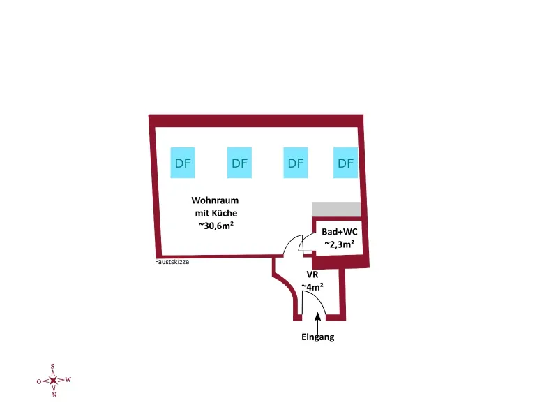 Die Wohnung besteht aus 2 Zimmer, mit knapp 37 m² Wohnfläche und gliedert sich in folgende, funktionelle Raumaufteilung: