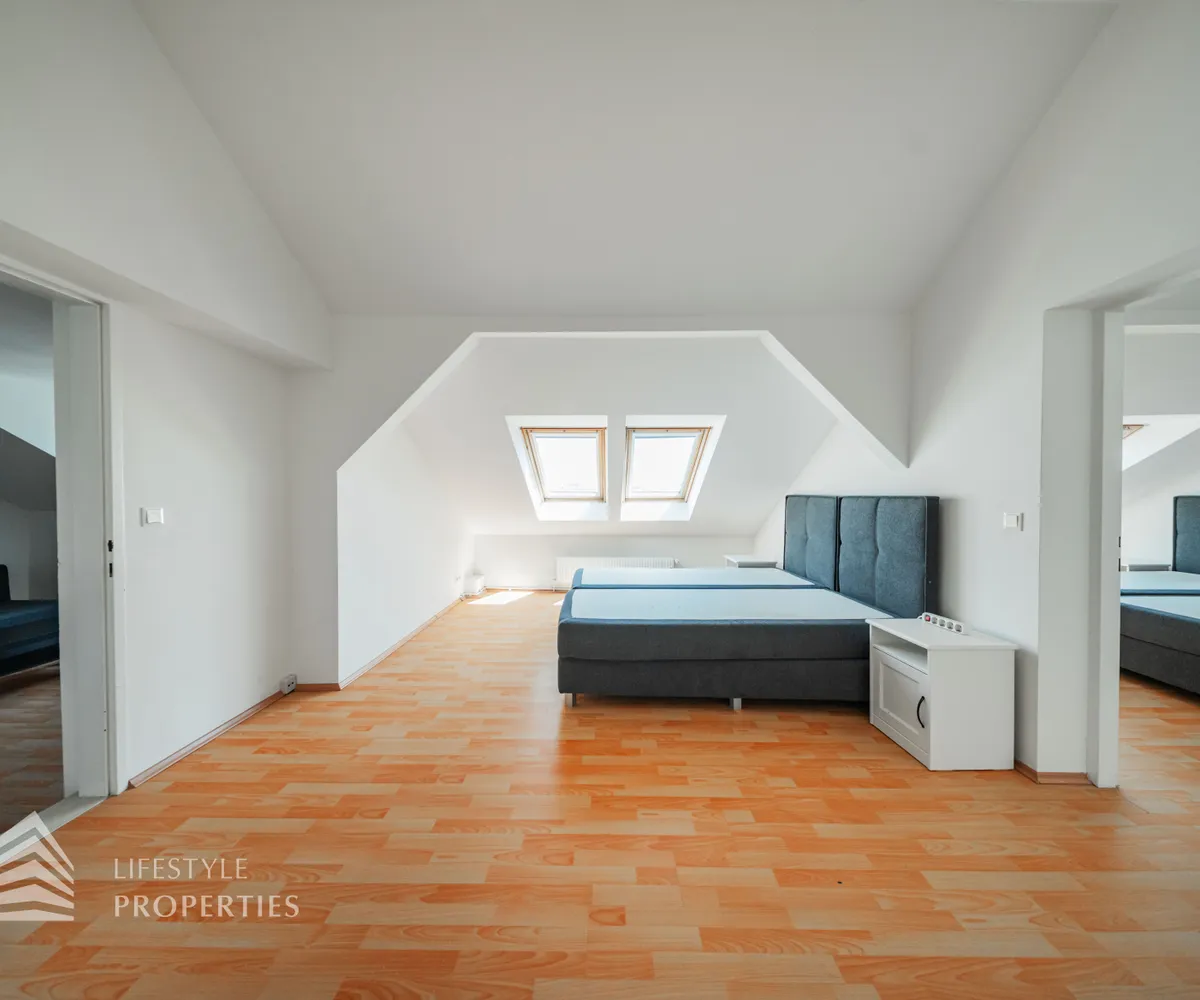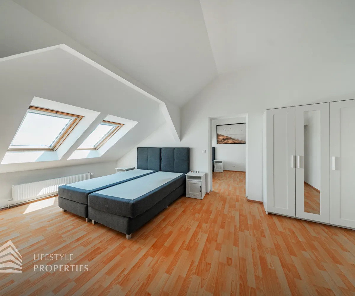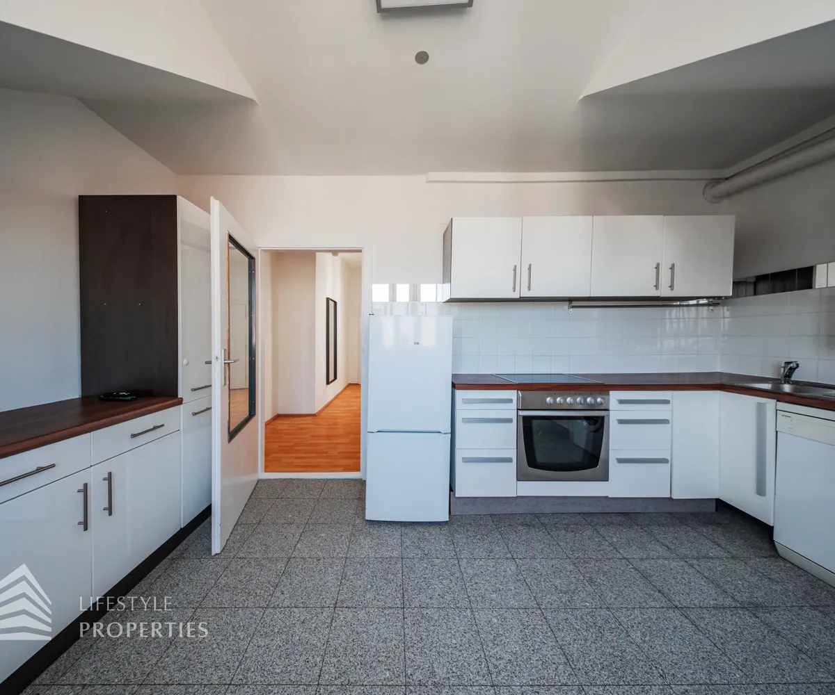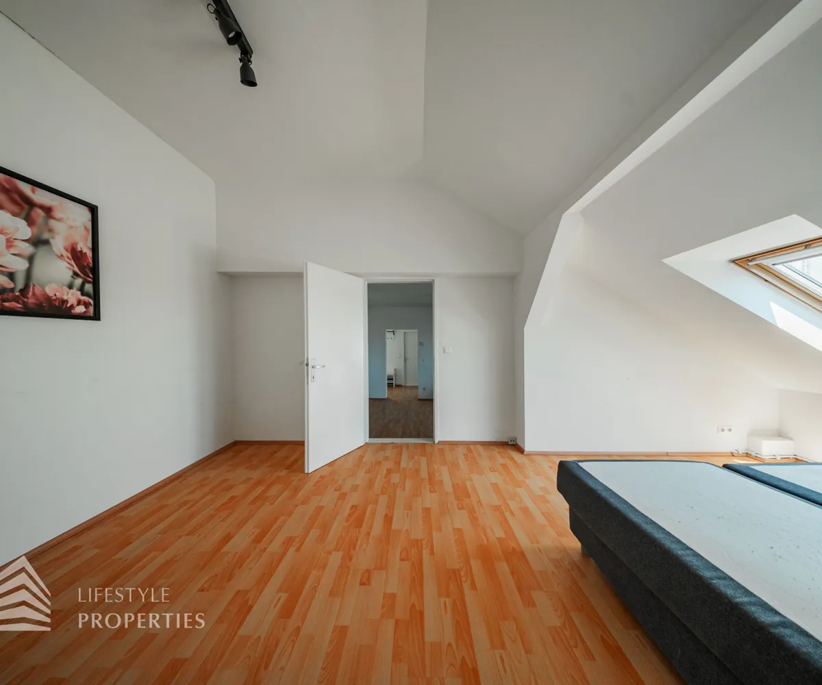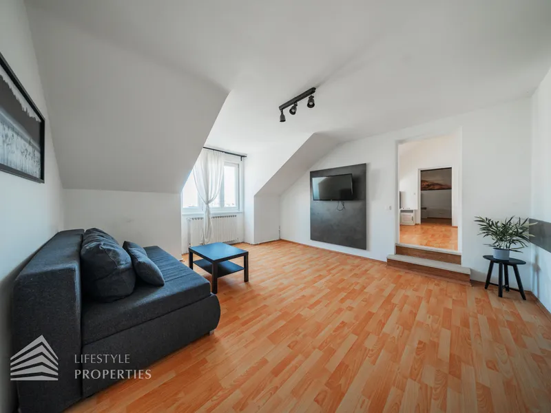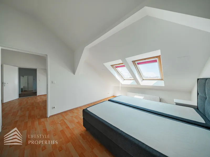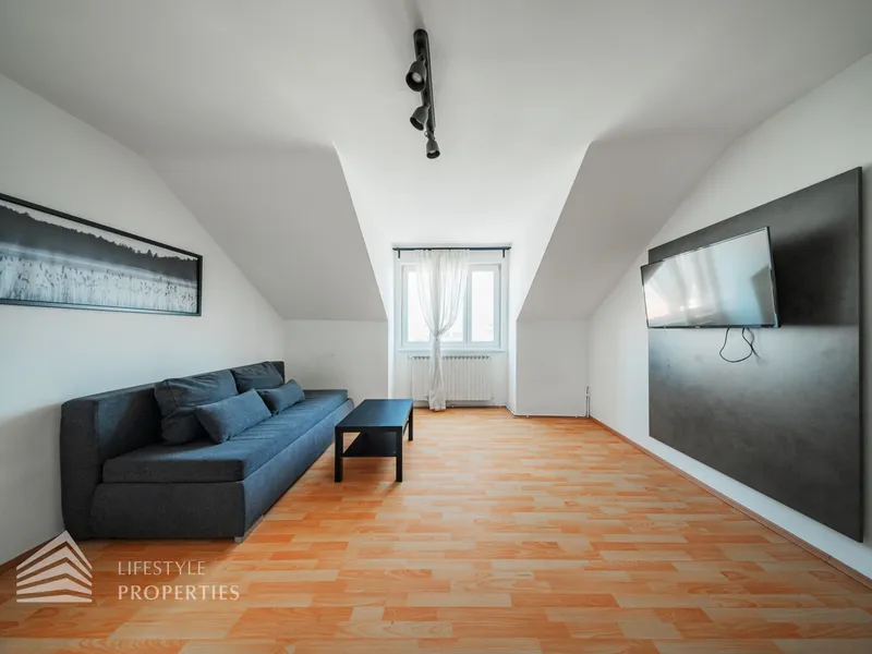 Die Wohnung befindet sich im DG eines schönen Stilaltbaus aus dem Jahr 1897 und gliedert sich in einen Vorraum, eine Wohnküche, zwei Zimmer, ein Badezimmer und ein separates WC. Die Wohnung ist möbliert.