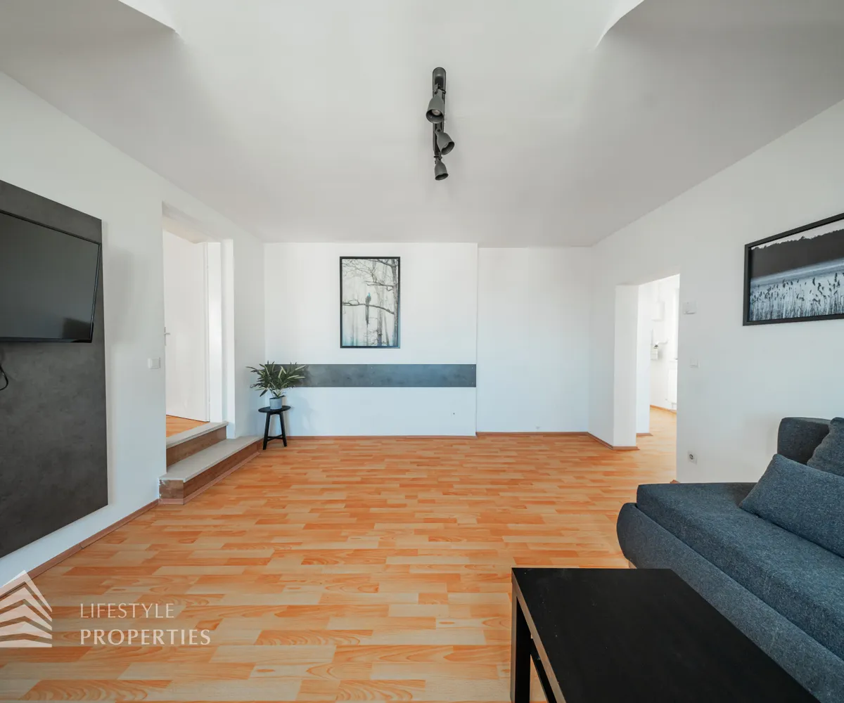 Sie betreten die Wohnung und befinden sich im Vorraum, gerade durch gelangen Sie in die geräumige Küche. Rechts im Vorraum gelangen Sie in die drei weiteren Räume. Das Bad ist mit einer Badewanne und einem Handwaschbecken. Das separate WC ist ebenfalls vom Vorraum erreichbar. Die Wohnräume sind mit schönem Parkett ausgestattet und die Nassräume sind verfliest.
