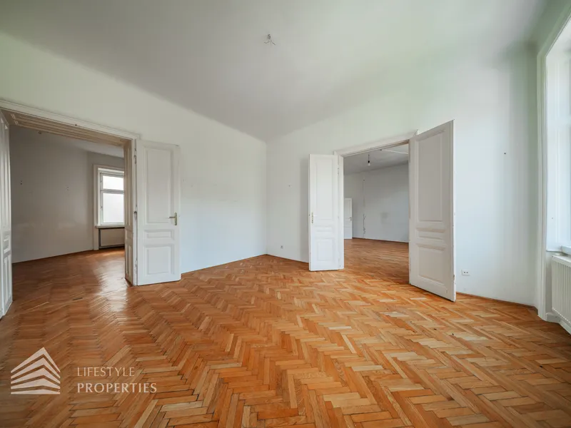 Die Wohnung befindet sich im 1. Stock eines schönen Stilaltbaus aus dem Jahr 1897 und gliedert sich in einen Vorraum, eine Küche, drei Zimmer, ein Badezimmer und ein separates WC.