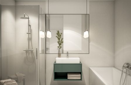 - Bad mit Wanne, Dusche und Waschbecken