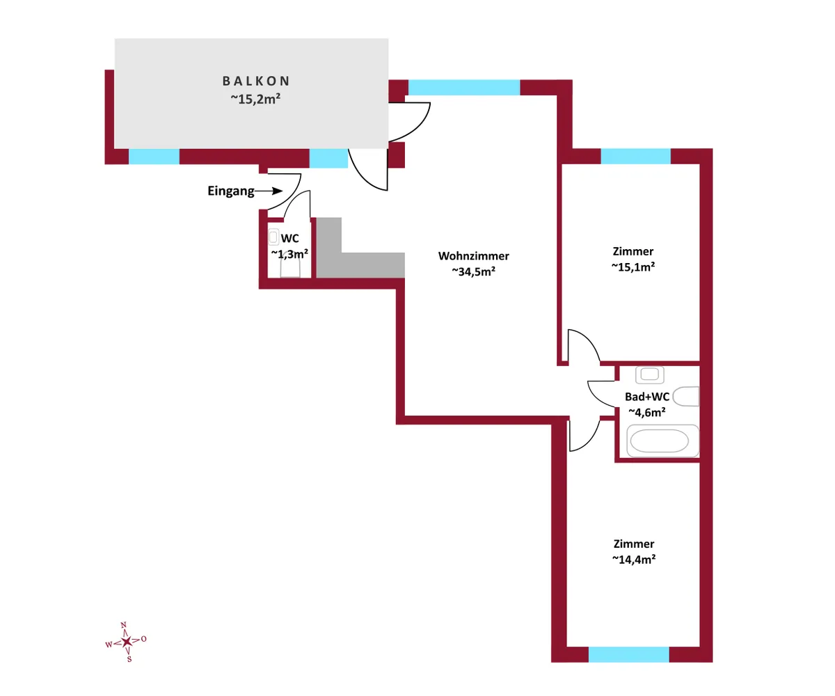 Diese topausgestattete 3-Zimmer-Erstbezugswohnung liegt im dritten Obergeschoß und erstreckt sich über ca. 69,9 m² Wohnfläche. Zusätzlich bietet der ca. 15,2 m² große Balkon, der zum Innenhof hin ausgerichtet ist, ausreichend Platz zum Entspannen. Die Wohnung verfügt über eine eigene Luftwärmepumpe, die über Fußbodenheizung betrieben wird und mit Kühlgeräten in allen Wohn- und Schlafbereichen auch an heißen Sommertagen für individuellen Komfort sorgt.