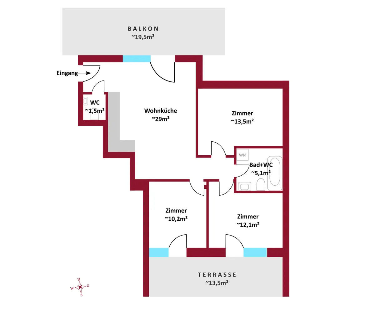 Diese topausgestattete 4-Zimmer-Erstbezugswohnung liegt im dritten Obergeschoß und erstreckt sich über ca. 71,23 m² Wohnfläche. Zusätzlich bietet der ca. 19,5 m² große Balkon und die ca. 13,5 m² große Terrasse, die Richtung Süden ausgerichtet ist, ausreichend Platz zum Entspannen. Die Wohnung verfügt über eine eigene Luftwärmepumpe, die über Fußbodenheizung betrieben wird und mit Kühlgeräten in allen Wohn- und Schlafbereichen auch an heißen Sommertagen für individuellen Komfort sorgt.