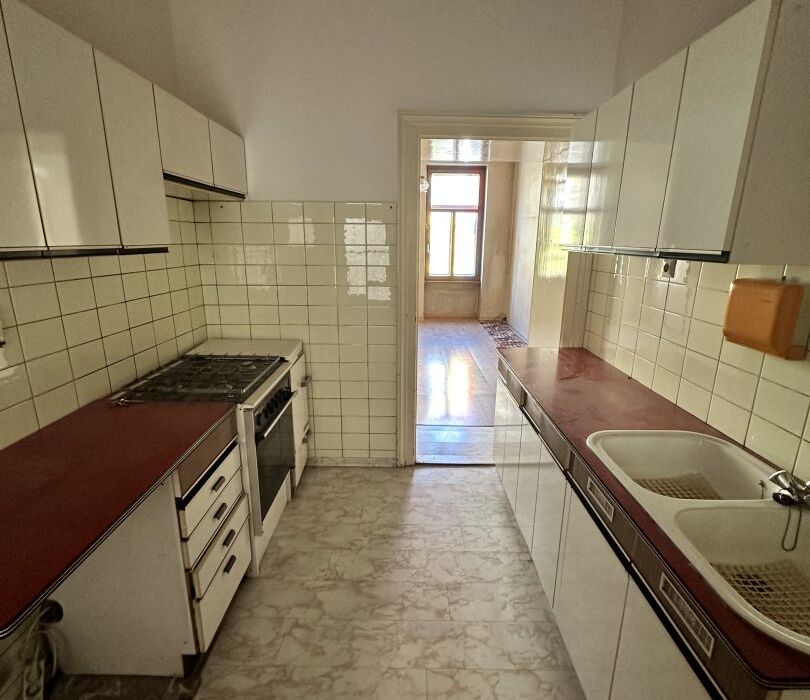 Diese renovierungsbedürftige Wohnung im 1. Stock eignet sich perfekt für denjenigen, die mit handwerklichen Geschick diese Immobilie umbauen und mit einer hervorragenden Lage verbinden möchten.