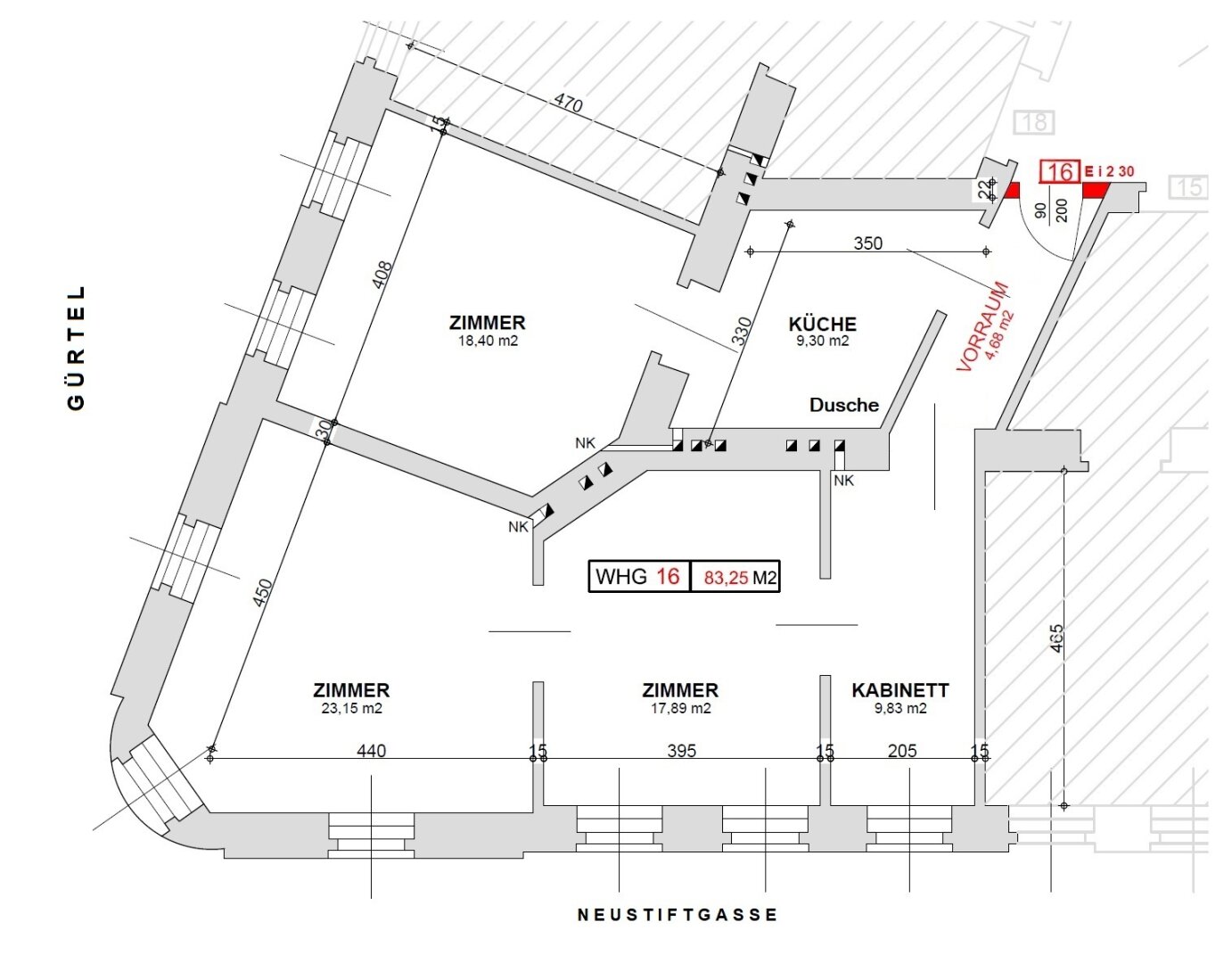 Unsanierte Wohnung im sanierten Stilaltbau, im ersten Stock direkt am Gürtel - Ecke Neustiftgasse