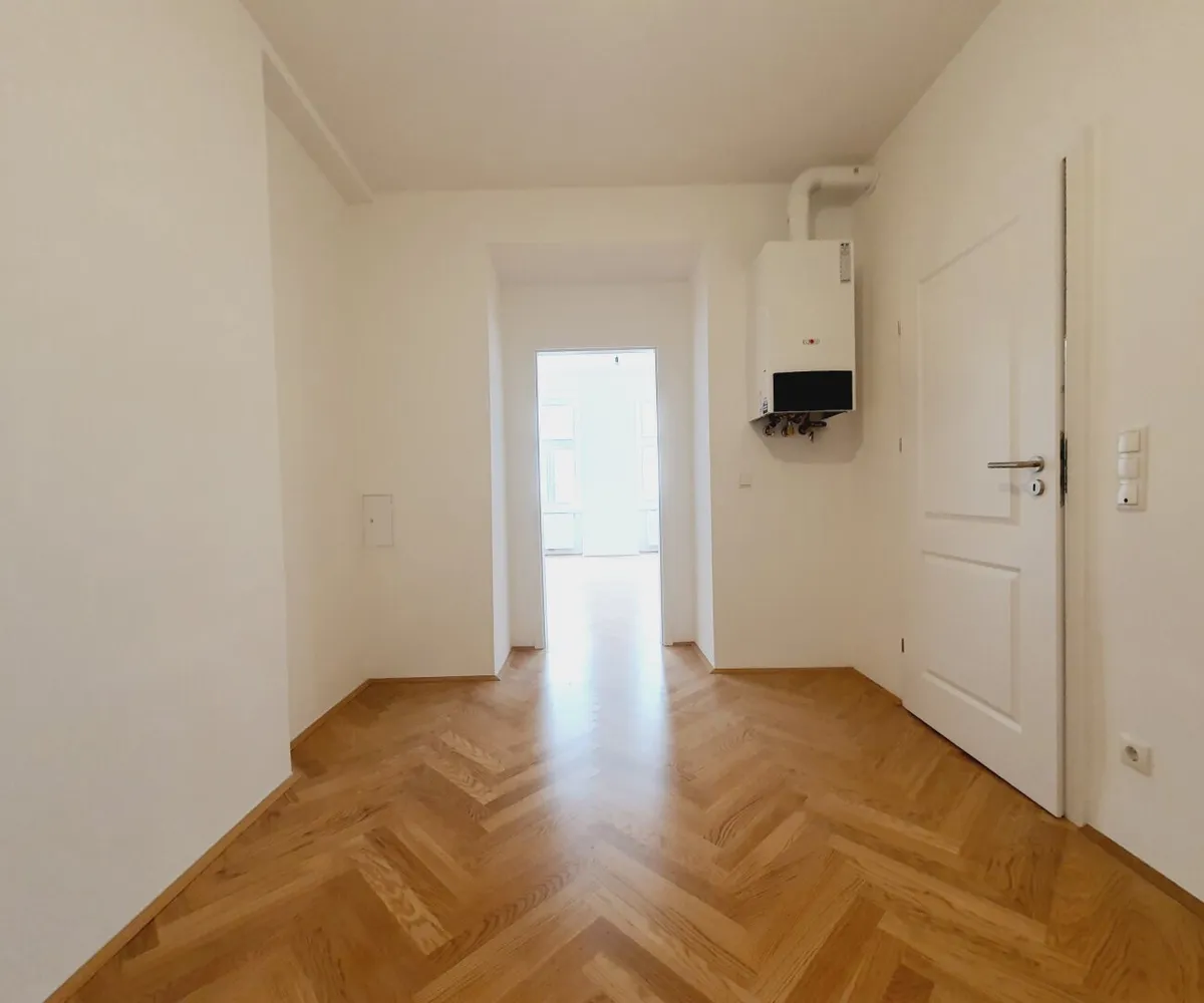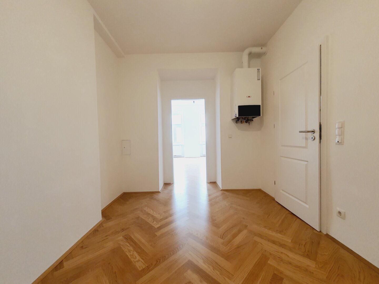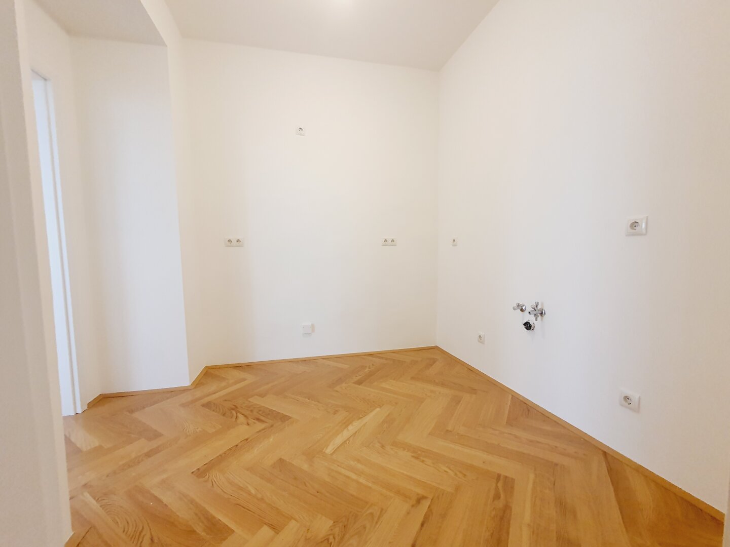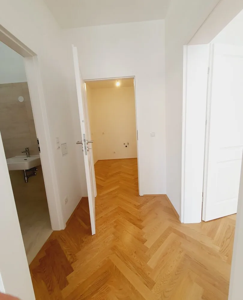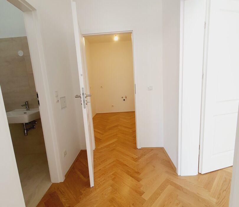 Die Wohnung ist ein Erstbezug und besticht durch hochwertige Ausstattungsmerkmale wie Parkettböden , eine Gaskombitherme für Heizung und Warmwasser und einen Aufzug , der Ihnen den Zugang erleichtert. Das hochwertige Badezimmer ist mit einer Dusche, einem Handtuchheizkörper , einem Waschmaschinenanschluss und einem Waschbecken ausgestattet, das WC ist separat und vom Vorraum begehbar.