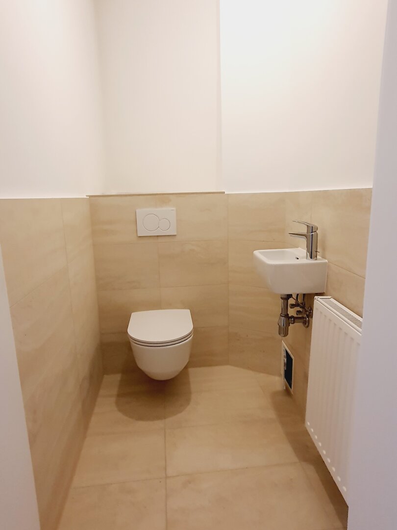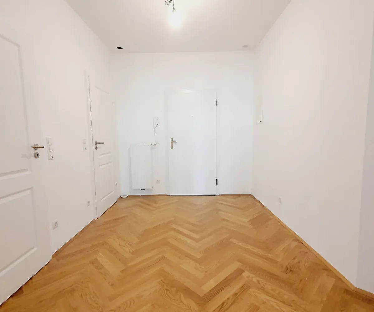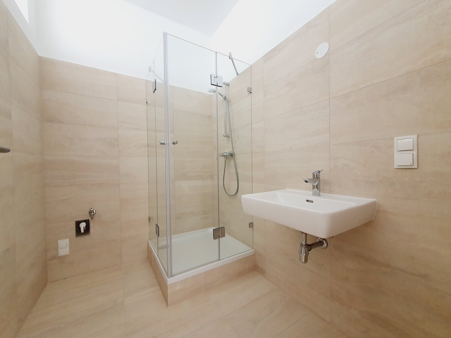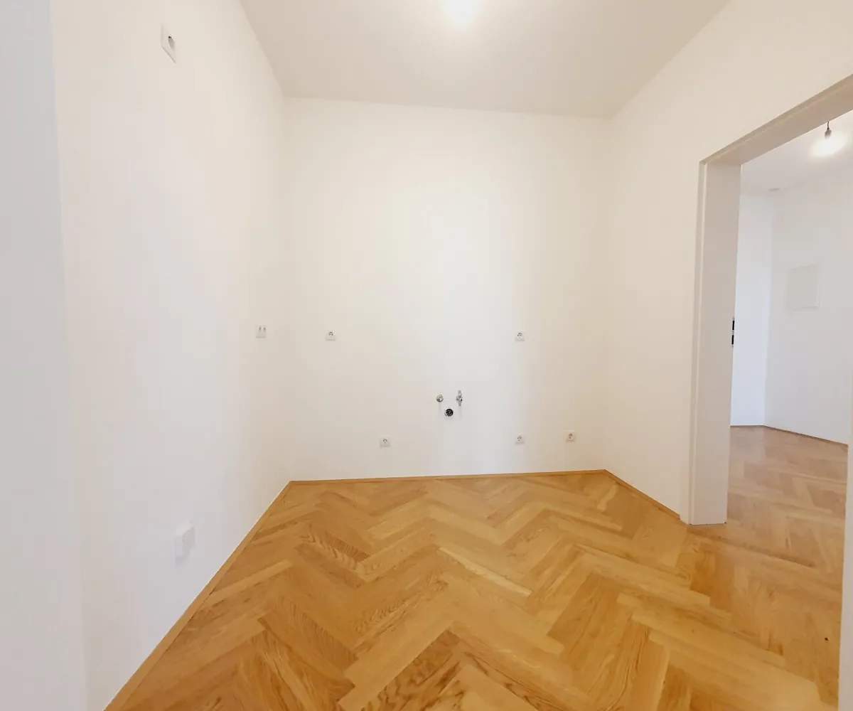 Die Wohnung ist ein Erstbezug und besticht durch hochwertige Ausstattungsmerkmale wie Parkettböden , eine Gaskombitherme für Heizung und Warmwasser und einen Aufzug , der Ihnen den Zugang erleichtert. Das hochwertige Badezimmer ist mit einer Dusche, einem Handtuchheizkörper , einem Waschmaschinenanschluss und einem Waschbecken ausgestattet, das WC ist separat und vom Vorraum begehbar.