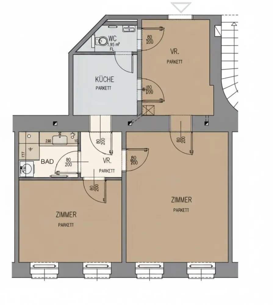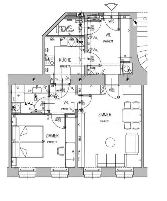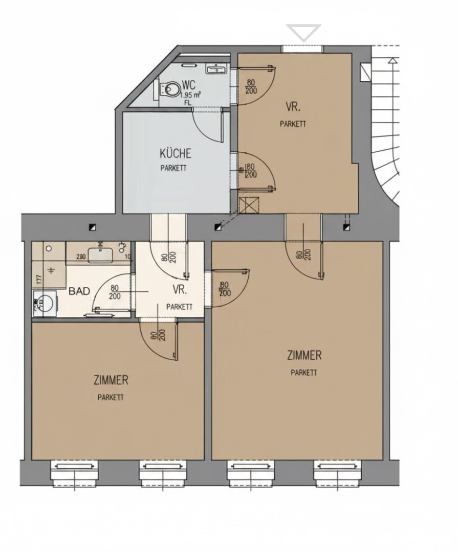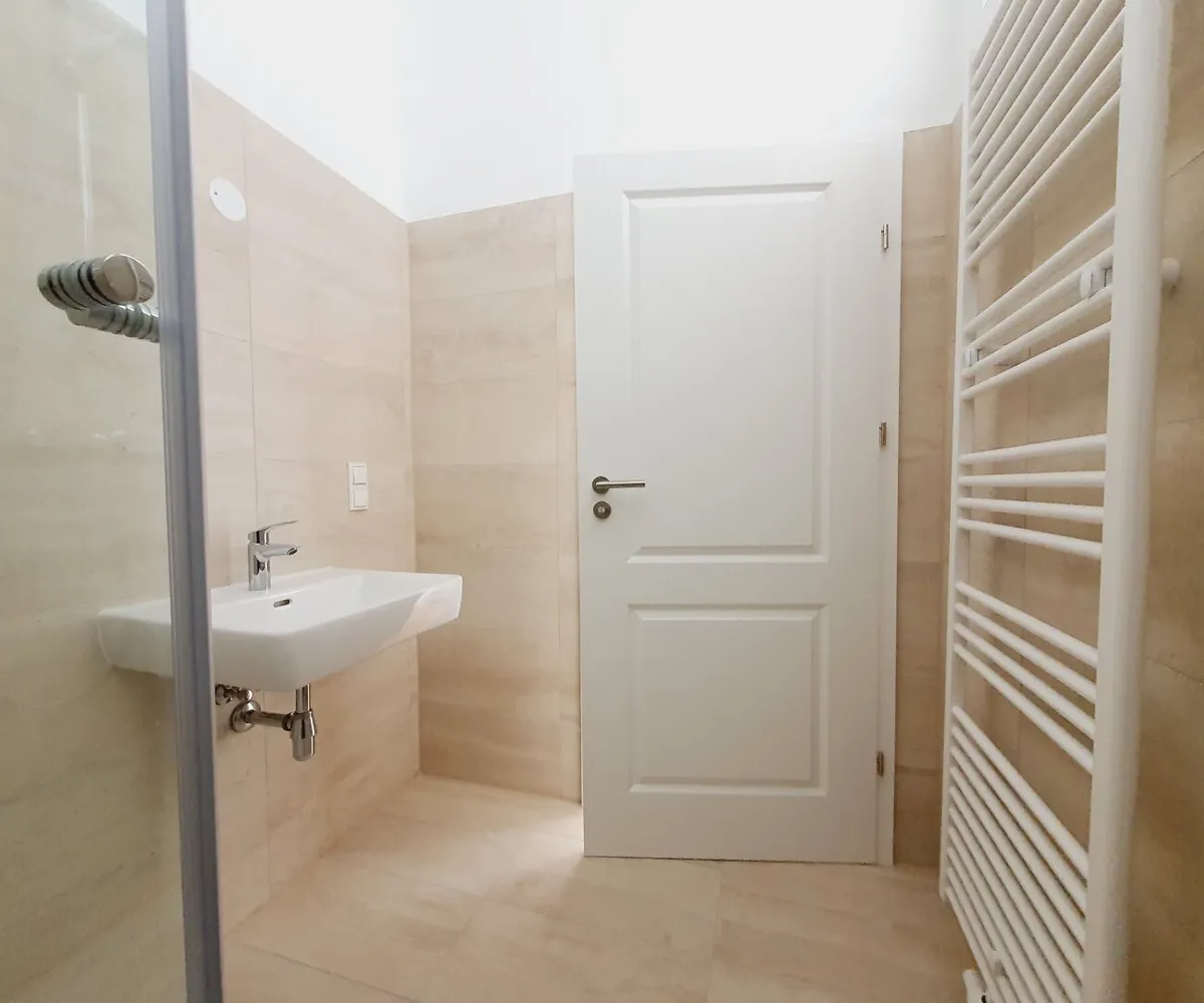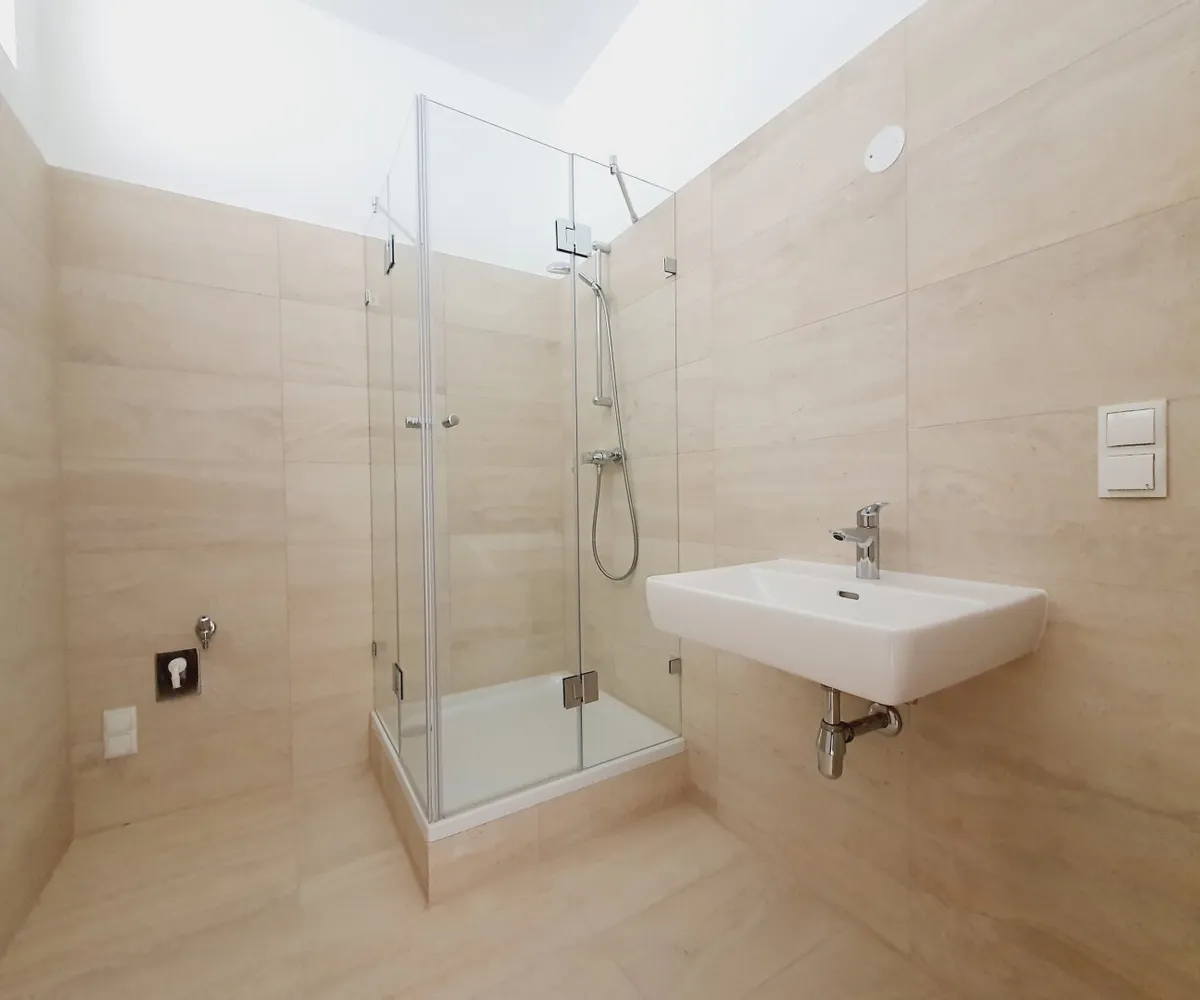 Die Wohnung ist ein Erstbezug und besticht durch hochwertige Ausstattungsmerkmale wie Parkettböden , eine Gaskombitherme für Heizung und Warmwasser und einen Aufzug , der Ihnen den Zugang erleichtert. Das hochwertige Badezimmer ist mit einer Dusche, einem Handtuchheizkörper , einem Waschmaschinenanschluss und einem Waschbecken ausgestattet, das WC ist separat und vom Vorraum begehbar.