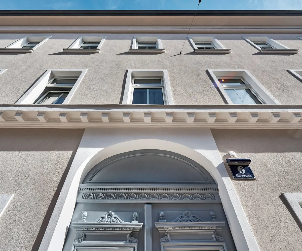 Die wunderschön sanierte Jahrhundertwendeliegenschaft aus dem Jahre 1885 in der Krongasse befindet sich zwischen Margaretenstraße und Mittersteig und vereint historischen Charme mit modernem Luxus . Mit viel Liebe zum Detail wurde das dreistöckige Gebäude 2024/2025 sorgfältig restauriert und um zwei Dachgeschoßebenen und einen Personenlift erweitert , sodass der ursprüngliche Charakter in perfektem Einklang mit einer hochwertigen, zeitgemäßen Ausstattung steht.
