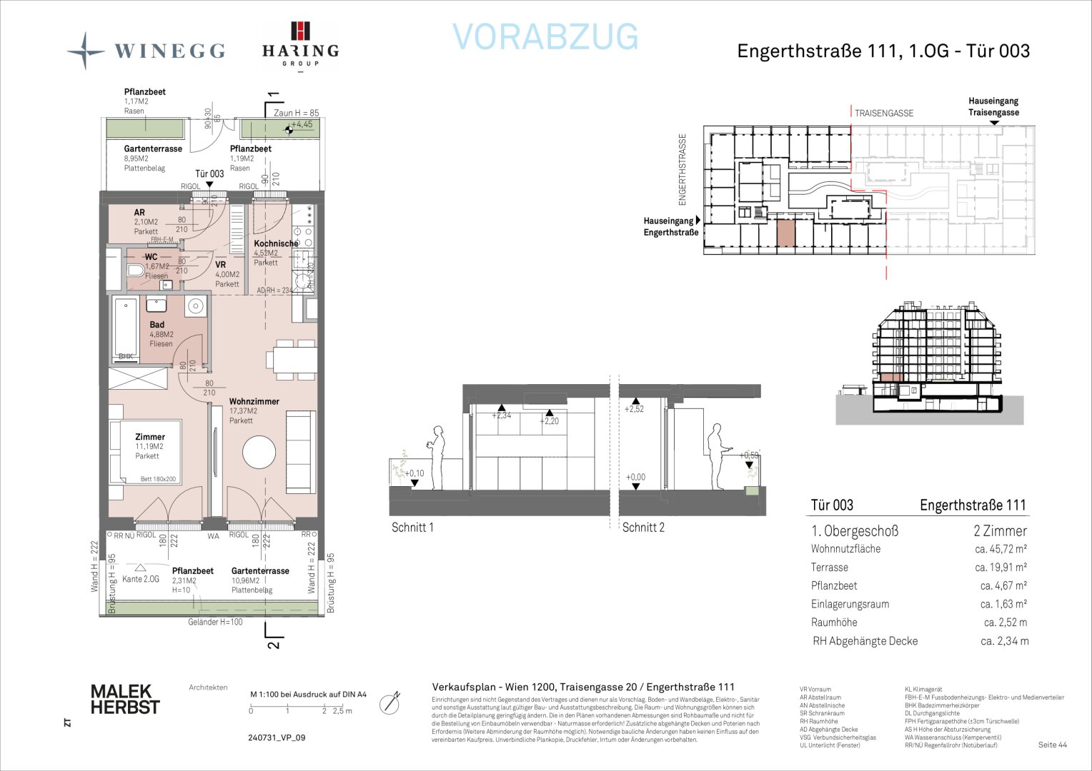 Der guten Ordnung halber halten wir fest, dass, sofern im Angebot nicht anders vermerkt, bei erfolgreichem Abschlussfall eine Provision anfällt, die den in der Immobilienmaklerverordnung BGBI. 262 und 297/1996 festgelegten Sätzen entspricht – das sind 3 % des Kaufpreises zzgl. 20 % USt. Diese Provisionspflicht besteht auch dann, wenn Sie die Ihnen überlassenen Informationen an Dritte weitergeben. Es besteht ein wirtschaftliches Naheverhältnis zum Verkäufer. Bis zum Baustart übernimmt der Bauträger die Käuferprovision. Die Vertragserrichtung und Treuhandabwicklung ist gebunden an den Rechtsanwalt Dr. Arnold Rechtsanwälte / Wipplingerstraße. Die Kosten betragen 1,8 % des Kaufpreises zzgl. 20% USt. sowie Barauslagen und Beglaubigung TreuhänderIn Fr. Dr. Bettina Schober.