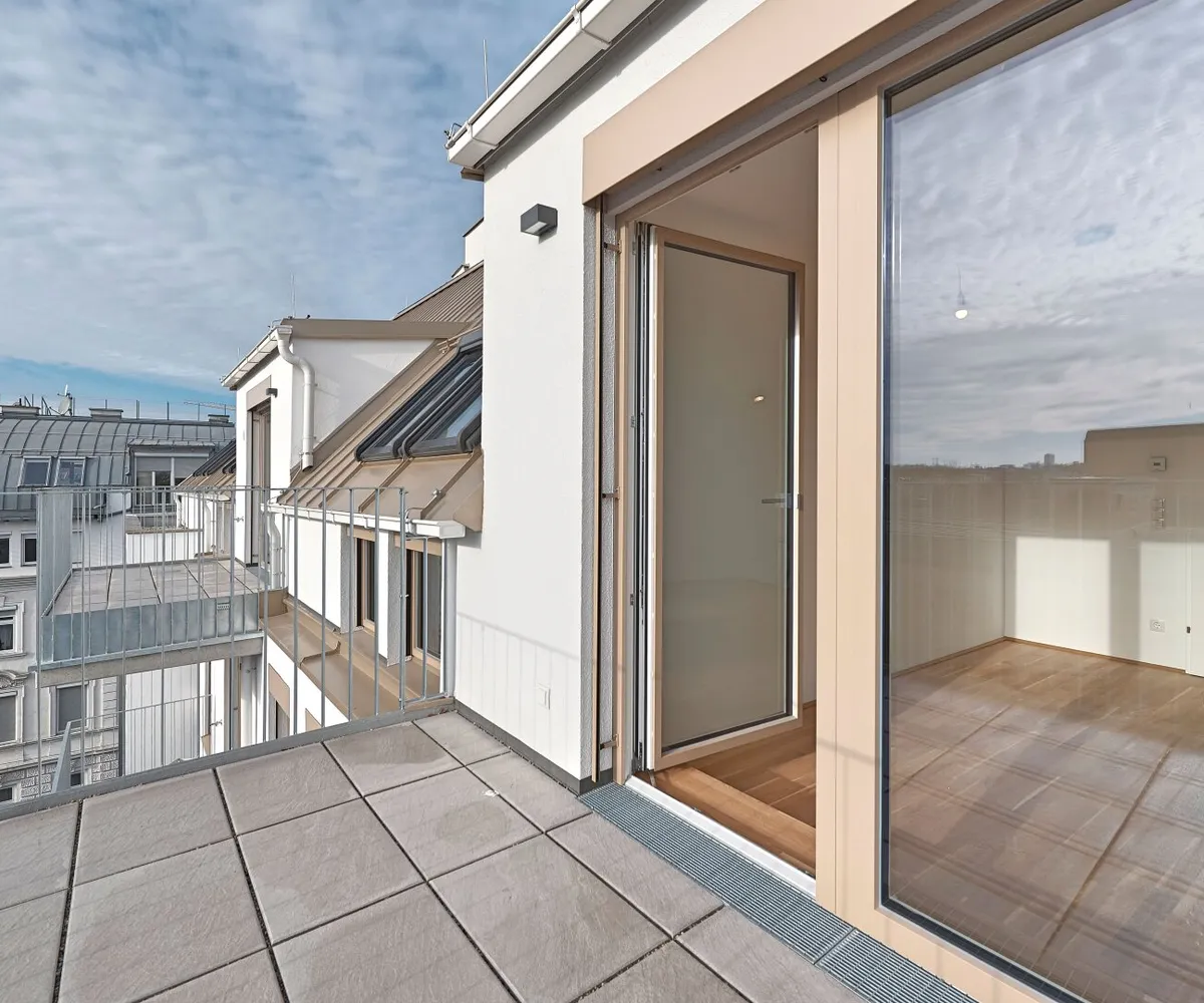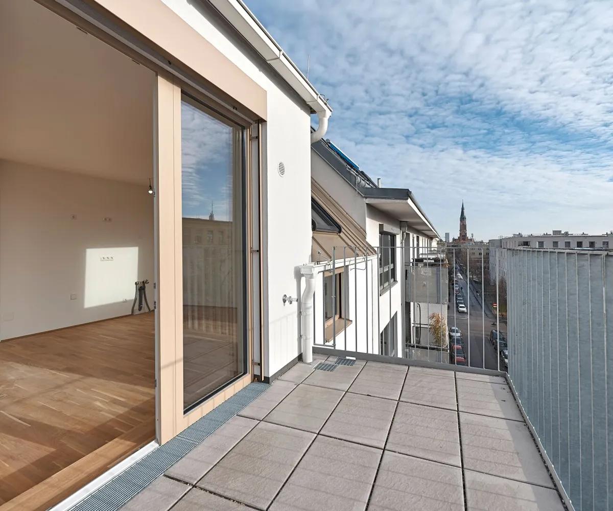 Fast alle Eigentumswohnungen verfügen über attraktive Freiflächen wie Balkone, Loggia, Terrassen oder Eigengärten. Über den Wohnungen im Erdgeschoss mit schönen Eigengärten entstehen auf 4 Obergeschoßen klug angelegte Wohneinheiten mit je 1 bis 4 Zimmern und Größen von ca. 35 bis 135 m². Die Wohnungen bieten entweder einen straßenseitigen- oder hofseitigen Blick und einen Freibereich in Form von Balkon, Loggia oder Terrasse. Den krönenden Abschluss bilden 2 attraktive Dachgeschossebenen, diese Wohnungen bieten Terrassen bzw. auch privaten Dachterrassen und einen schönen Ausblick.
