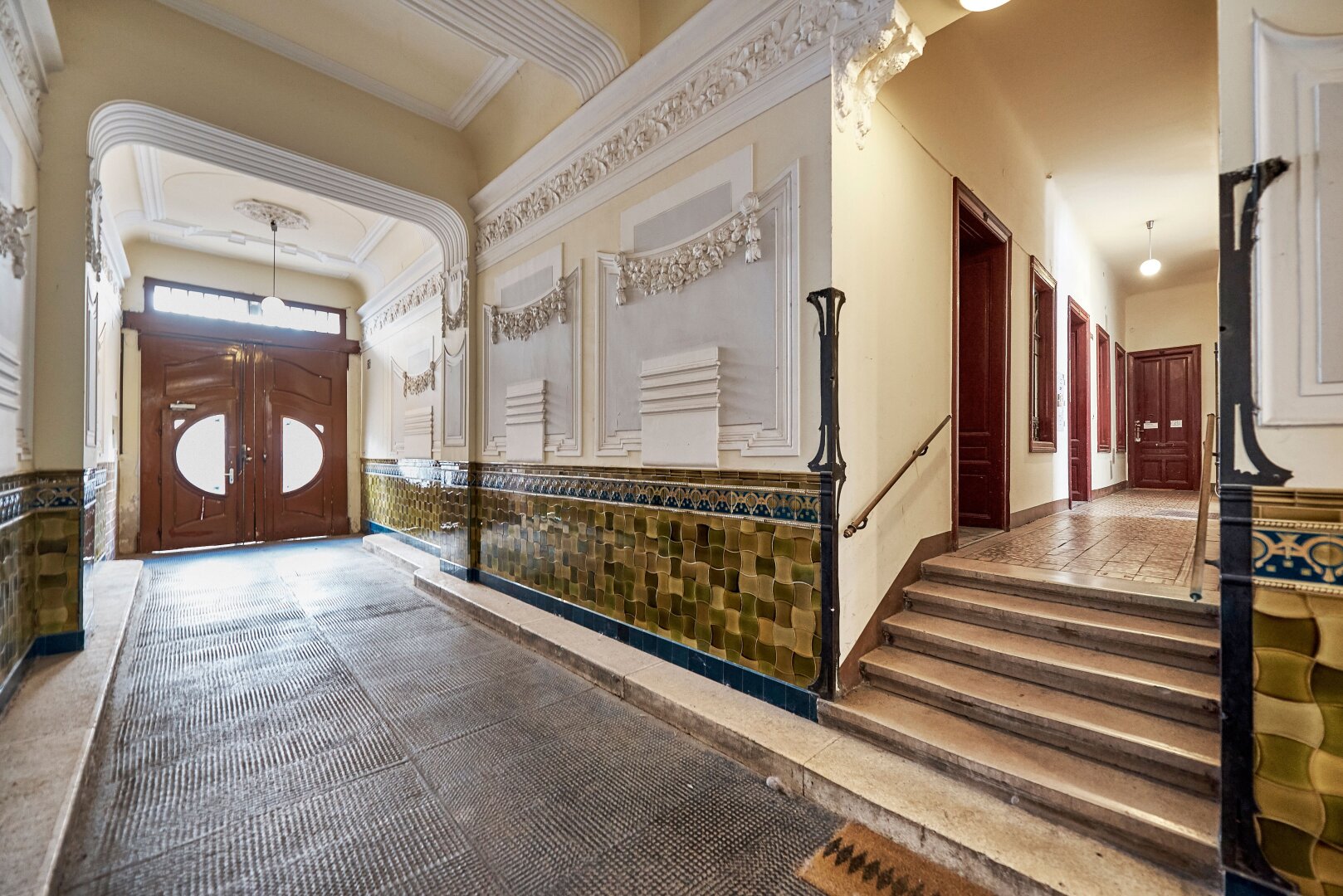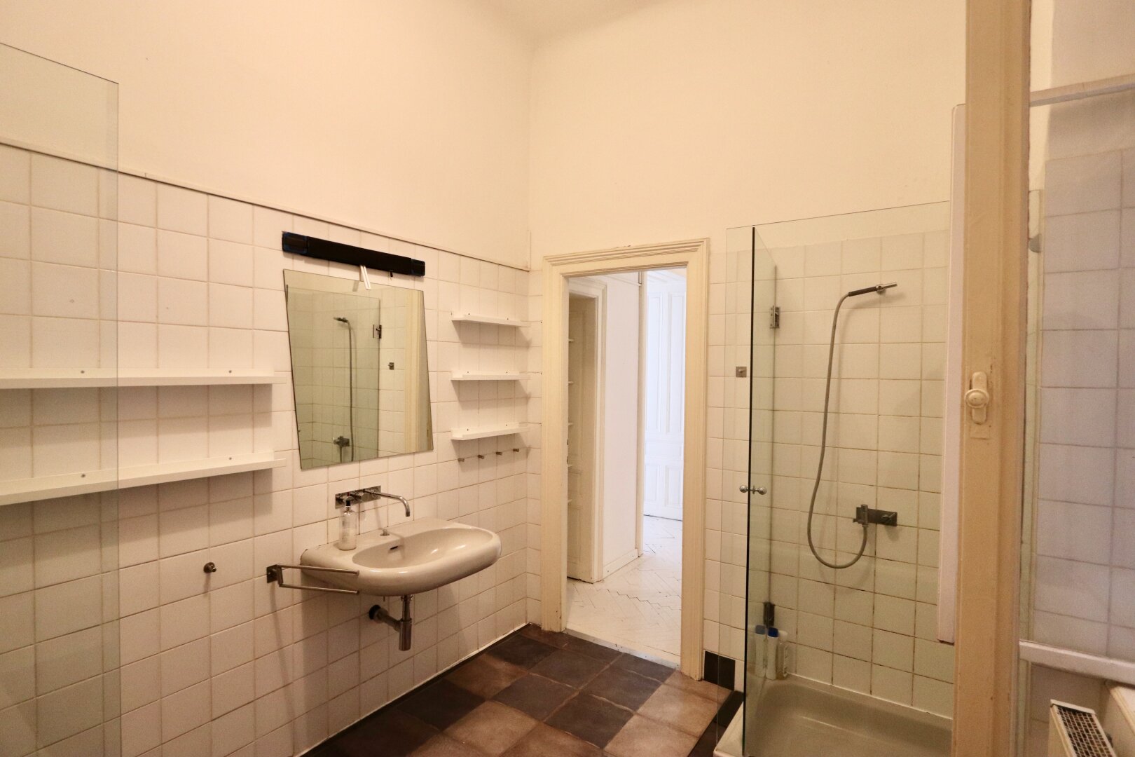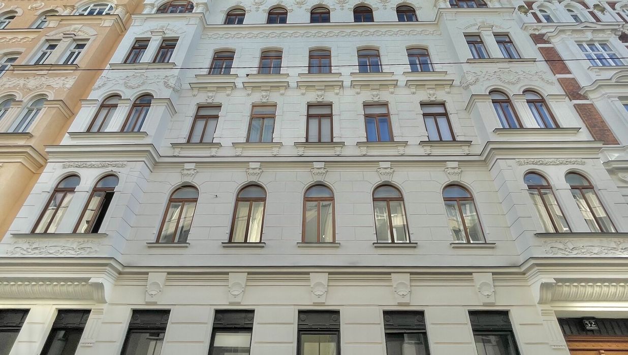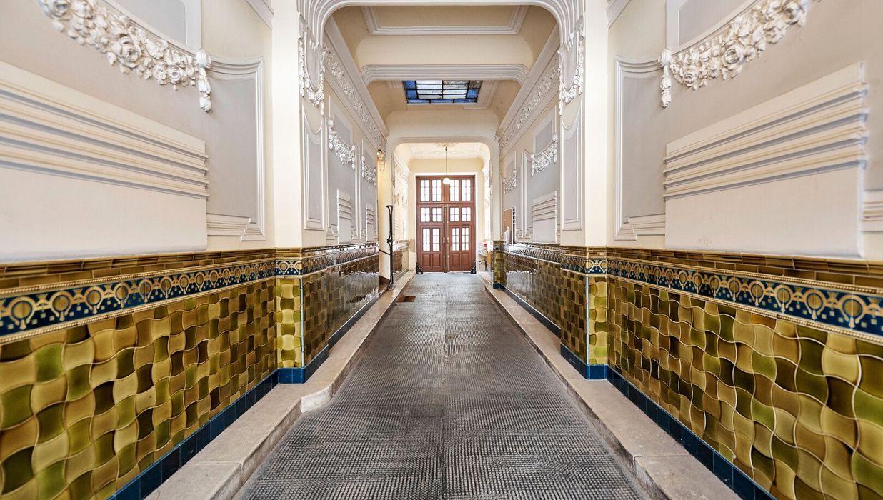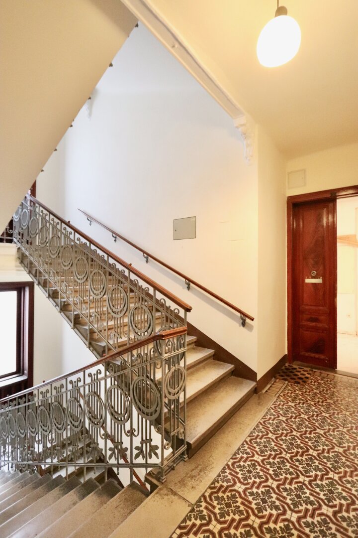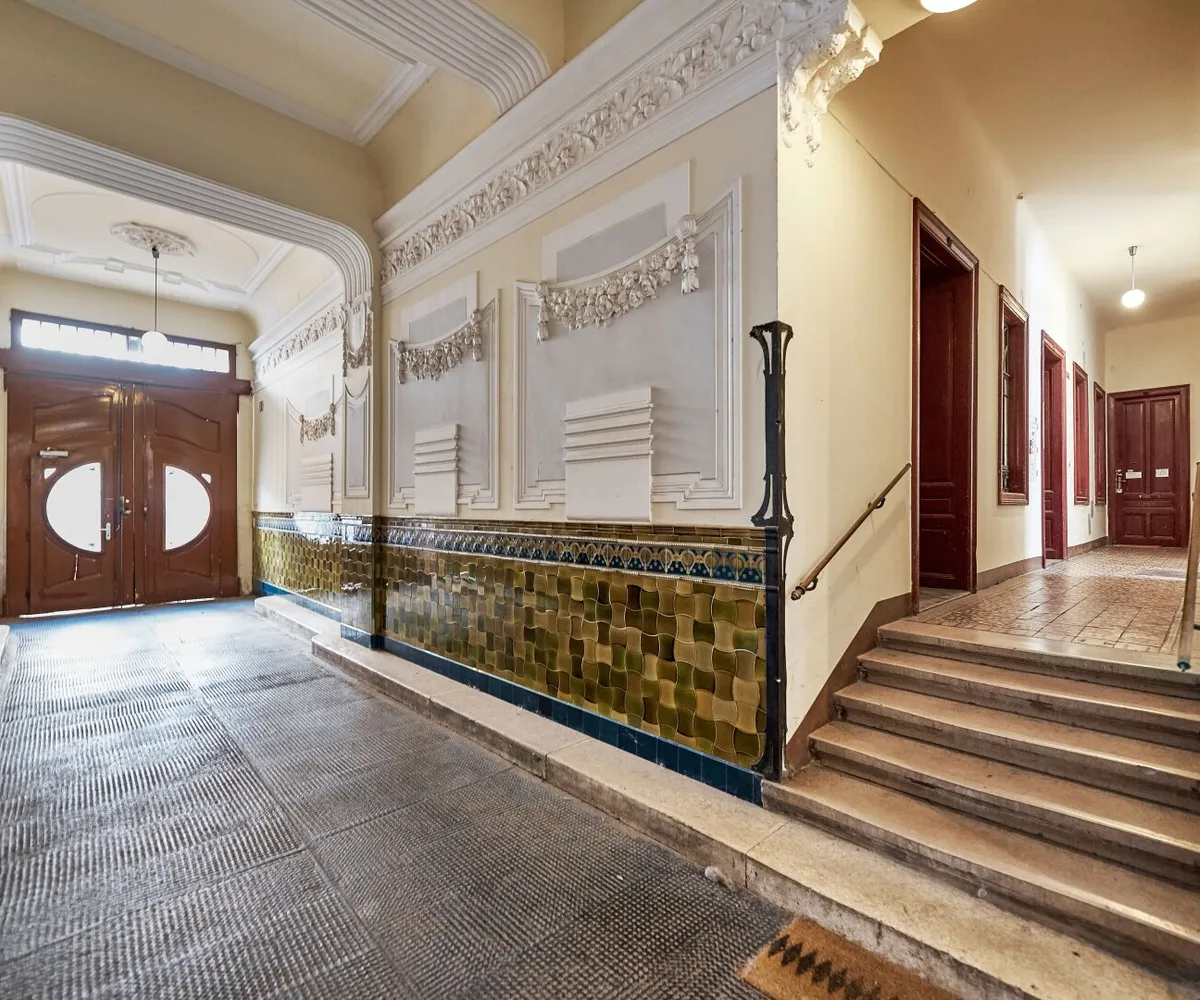 Der sanierungsbedürftige 4-Zimmer-Altbau mit ca. 124 qm Wohnfläche befindet sich im 1. Stock (entspricht der 2. Etage, da sich ein Mezzanin dazwischen befindet) und ist in den Innenhof sowie auf die Bandgasse ausgerichtet.